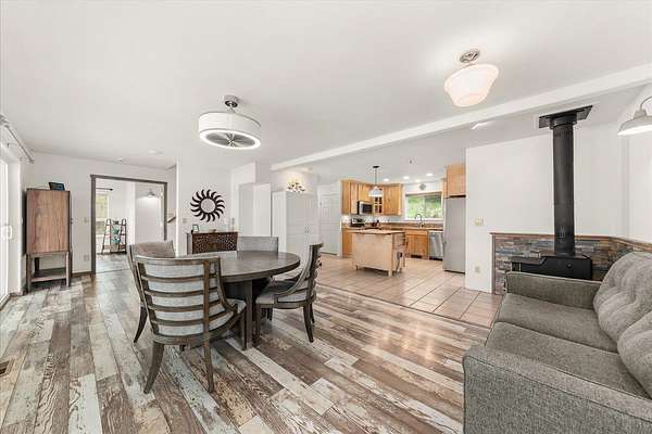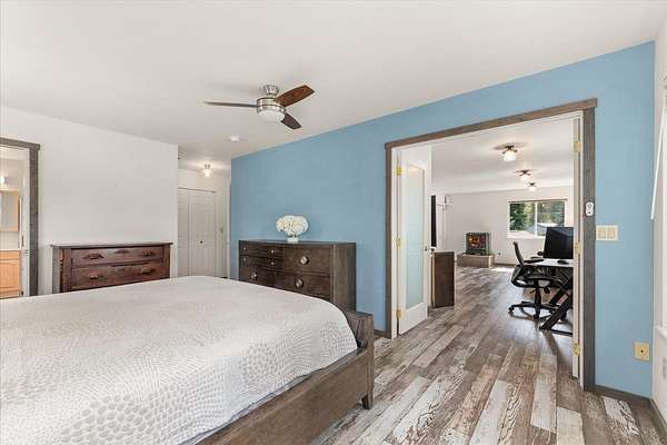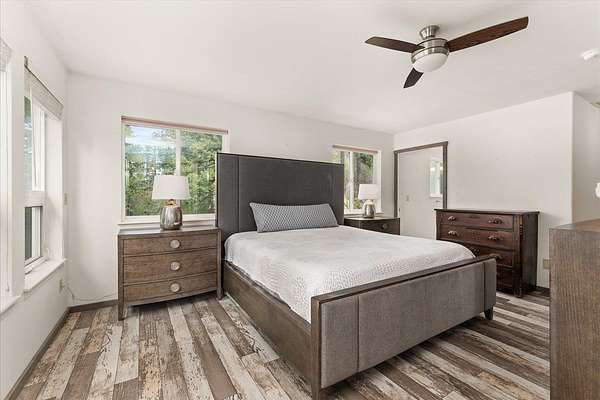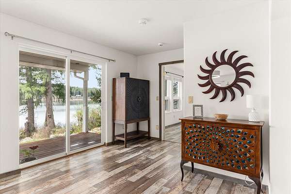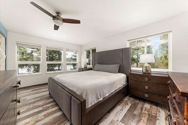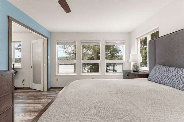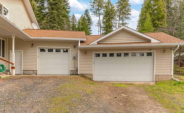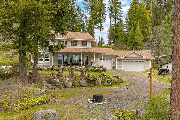 Gorgeous 2-story primary waterfront home on 1.9 acres on Eloika Lake with 300 ft of lake frontage! Located just 25 min north of Spokane with exceptional recreation opportunities for kayaking, paddleboarding, boating & fishing in a quiet & peaceful setting on a private dead-end road with only 1 neighbor beyond! Set up for year-round lake living with exquisite views from every room. House has 2 primary bedrooms with en-suite baths (one per level!) & an updated kitchen with hickory cabinets, granite countertops, stainless steel appliances. 3-car attached garage with 12' ceiling & 2 shop heaters. Central vac. Strong 7 gpm well with 500 gallon cistern. RV parking & space for a shop alongside the house. Natural spring on north side of property & seasonal stream. Exceptional wildlife viewing: migratory geese, swans, osprey & 4 eagles over-winter at the lake each year. South Fork of Little Spokane River enters the lake to north, accessible by kayak. Abundant fish: largemouth bass, black crappie, yellow perch & trout.
