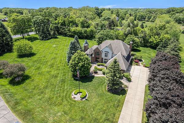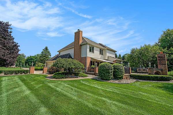 Nestled on an expansive, professionally landscaped 2-acre lot, this impressive custom-built home is sure to amaze you. As you enter, you'll find a bright two-story foyer featuring a beautifully curved staircase, perfect for welcoming guests. The spacious living room boasts high bay windows and an elegant fireplace with a granite surround and wood mantel, while the beautiful dining room showcases a stunning double-tiered ceiling detail and designer lighting. French doors lead to an inviting study adorned with arched windows. The large kitchen, outfitted with stainless steel Viking appliances and a generous island, opens to the breakfast/sunroom and family room, making it ideal for gatherings. The family room offers a cozy fireplace and new carpeting. Step outside to enjoy a spectacular courtyard and patio with an outdoor brick fireplace, retractable awning, and surrounded by stately mature trees. The first floor includes a laundry room and a powder room. Upstairs, the serene primary suite features a separate tiled shower and a spa tub, 2 separate vanities, and a walk-in closet. There are three additional bedroomsone with an en-suite bathroom, while bedrooms 3 and 4 share a third full bath. A three-car garage equipped with a 220 plug for electric vehicles adds convenience. Most windows have been replaced with Andersen models, and the full basement is ready for your personal touch. The exterior has been freshly painted. This wonderful home is conveniently located near Ann Arbor, M-14, and major routes, in the Ann Arbor School District.