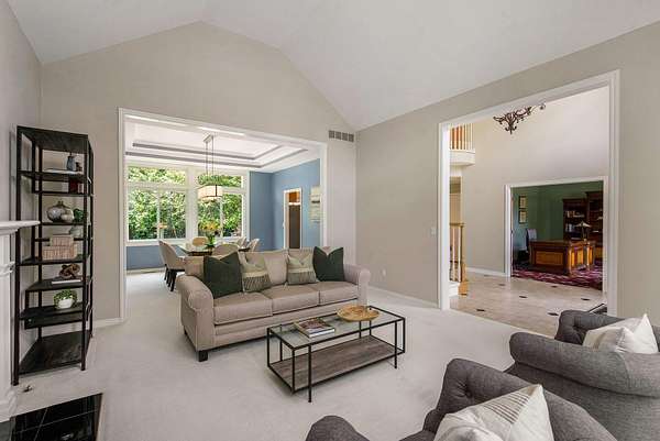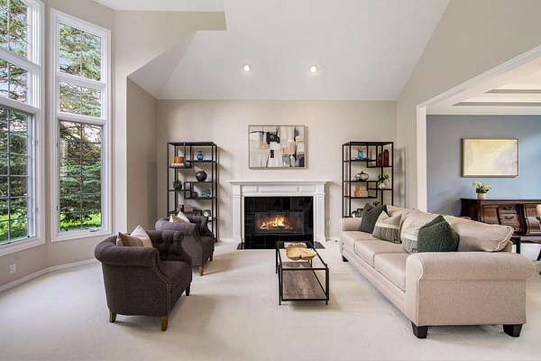 Nestled on an expansive, professionally landscaped 2-acre lot, this impressive custom-built home is sure to amaze you. As you enter, you'll find a bright two-story foyer featuring a beautifully curved staircase, perfect for welcoming guests. The spacious living room boasts high bay windows and an elegant fireplace with a granite surround and wood mantel, while the beautiful dining room showcases a stunning double-tiered ceiling detail and designer lighting. French doors lead to an inviting study adorned with arched windows. The large kitchen, outfitted with stainless steel Viking appliances and a generous island, opens to the breakfast/sunroom and family room, making it ideal for gatherings. The family room offers a cozy fireplace and new carpeting. Step outside to enjoy a spectacular courtyard and patio with an outdoor brick fireplace, retractable awning, and surrounded by stately mature trees. The first floor includes a laundry room and a powder room. Upstairs, the serene primary suite features a separate tiled shower and a spa tub, 2 separate vanities, and a walk-in closet. There are three additional bedrooms one with an en-suite bathroom, while bedrooms 3 and 4 share a third full bath. A three-car garage equipped with a 220 plug for electric vehicles adds convenience. Most windows have been replaced with Andersen models, and the full basement is ready for your personal touch. The exterior has been freshly painted. This wonderful home is conveniently located near Ann Arbor, M-14, and major routes, in the Ann Arbor School District.