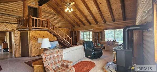 River, river, river easement! Fish to your heart's content. 360-degree views from this rustic log cabin of your dreams. Features vaulted ceilings, exposed log beams & large rooms. Plenty of room for all your toys. Main insulated, double-car matching garage is 27x31. Smaller metal shed is 16x24. Beautiful mature trees & large landscaped yard. Dog door, fenced yard, covered porch, decks, sprinkler system...all provide outdoor living at its best. Plenty of outdoor activities, 4-wheeling, hunting, fishing, hiking, Mackay Dam within minutes. Buyer to verify square footage. Please read CC&Rs & Home Owners Assn at following link. https://mccalebestatesloa.wordpress.com/documents