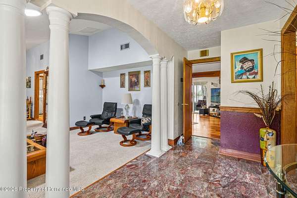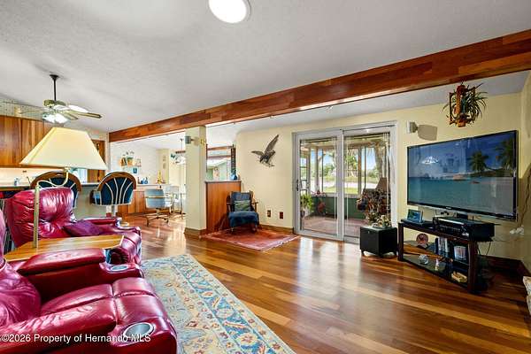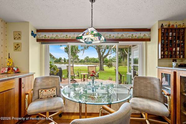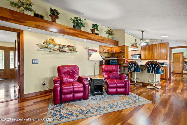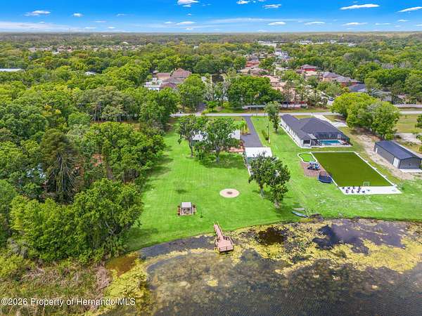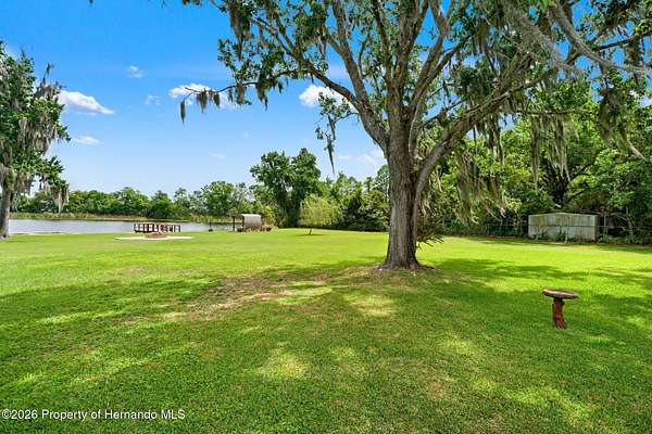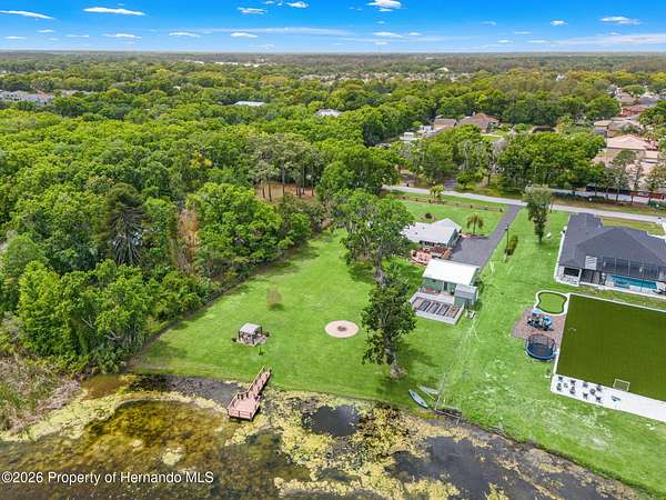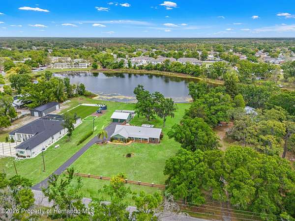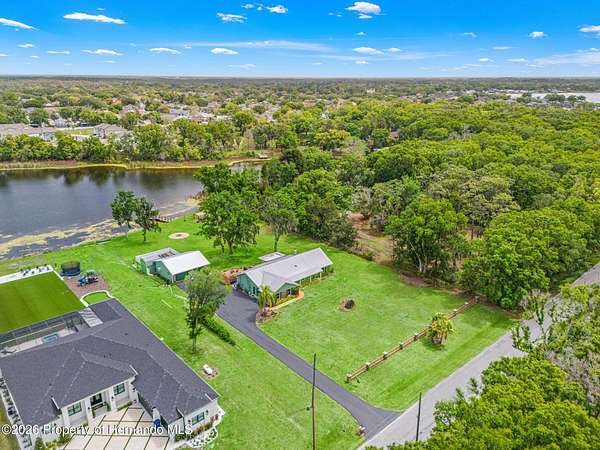 Welcome to an extraordinary lakefront retreat where luxury meets tranquility on 2.54 pristine acres overlooking picturesque Banjo Lake. This stunning three-bedroom, two-bath residence offers the perfect blend of refined upgrades, thoughtful design, and serene outdoor living. Inside, a spacious split-bedroom floor plan is complemented by an additional living room and a formal dining area, providing ample space for both everyday comfort and elegant entertaining. The heart of the home features a beautifully appointed kitchen and family room combination, complete with eat-in dining space and breathtaking lake views. Premium finishes include solid wood interior doors and molding throughout, rich hardwood flooring, wood soft-close cabinetry with full-extension drawers and shelving, Silestone countertops, and stainless-steel appliances. The inviting family room showcases a cozy wood-burning fireplace and sliding glass doors that open to an enclosed Florida room, seamlessly extending your living space and enhancing the indoor-outdoor lifestyle. This home is equally impressive in its upgrades and efficiency, featuring a durable metal roof, double-pane insulated windows and doors, a new AC system installed in 2025 with transferable warranties, two new electrical panels, and an on-demand electric water heater. Step outside to experience a true private oasis. The expansive 40x25 deck with a lighted electric awning is perfect for relaxing or entertaining, complete with a zero-maintenance five-person Bullfrog hot tub. The property also includes a 28x28 detached garage/workshop with full electric and air conditioning, a 12x12 storage shed, and a raised bed garden with drip irrigation for those who appreciate outdoor living. Enjoy peaceful moments by the water under the charming pergola, or take advantage of your private dock for fishing, kayaking, and soaking in the natural beauty of this park-like setting. Ideally located approximately 20 miles from downtown Tampa and Tampa International Airport, this exceptional property offers the perfect balance of privacy and convenience--close enough to enjoy vibrant city life while savoring the peace and space of your own lakefront sanctuary. Schedule your private showing today and experience this remarkable property for yourself.