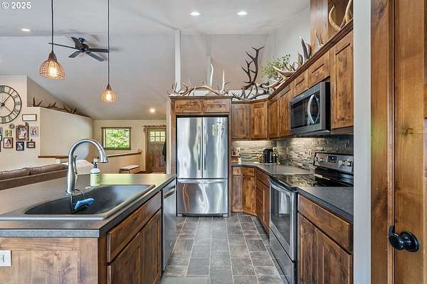 Impeccably maintained home on Testament Creek Road! Located in a quiet and secluded area of Tillamook County, with public access to the forest, nearby. One of a kind home that was built in 2014 and features two bedrooms upstairs, one downstairs, plus a den. Inside you'll find two spacious family rooms and lots of extra storage throughout. A wood stove heats the upstairs and downstairs radiant floor heat provides plenty of warmth. On the south side of the home you'll find a large deck to enjoy the views. The property is two acres and features nicely landscaped grounds, extra parking, wood storage, and a large stamped concrete patio. Home is wired for a generator and is served by a shared well. Property also features a few dry camp sites. Call today for more details!