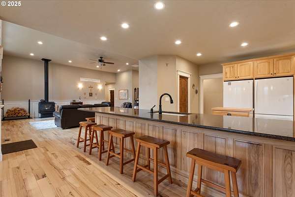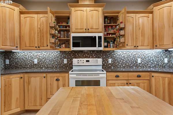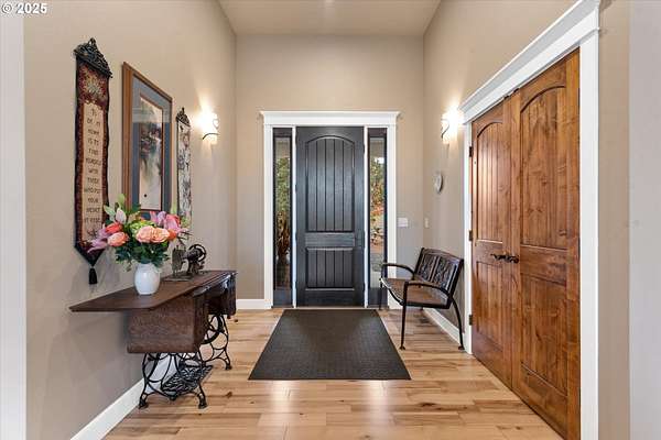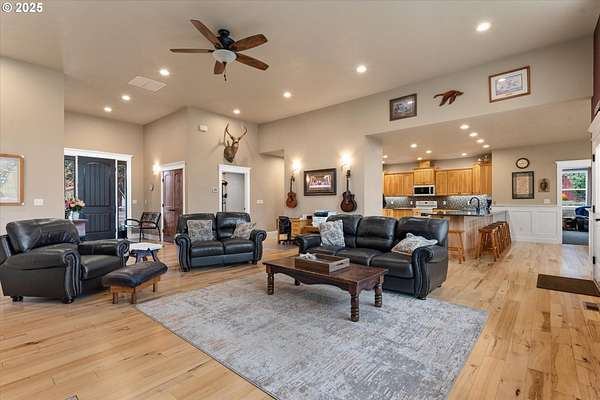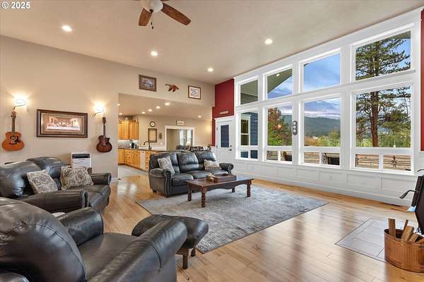 This custom home was built with superior materials by one of the most respected builders in the area! Situated on 6.54 private acres, the property is located at the end of a quiet road with stunning views of the Elkhorn Mountains. Single level living with 4 bedrooms, 4 bathrooms, plus office/den (3,469 sq ft). Interior of the home features hardwood cabinetry and floors, solid wood doors and other custom finishes throughout. Spacious open concept living includes a chef's kitchen with oversized eating bar, dining area, and large living room with a Blaze King woodstove that can easily heat the home through the winter if desired. Primary suite boasts mountain views, direct covered patio access, ensuite bath with dual vanities, and walk-in shower. A dedicated home office with private entrance makes remote work or business office comfortable and convenient. The oversized garage accommodates 2 full-size trucks or SUV's with additional loft/attic storage. Enjoy the landscaped yard with fenced garden space, fruit trees, in-ground sprinklers and a tranquil water feature. Property is fully fenced for horses and includes a frost-free waterer. No HOA. Perfect access to outdoor recreation and adventure--ride horses or ATVs from your property onto public land for miles of trails. Country living meets refined comfort in this exceptional property and yet just a short drive to downtown Baker City! Be sure to view both videos for the full scope and beauty of this property.