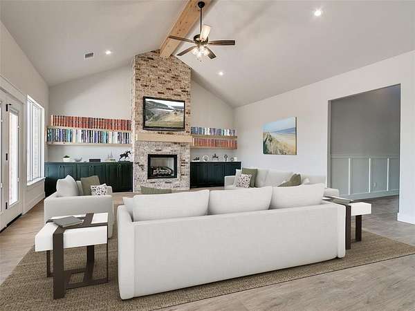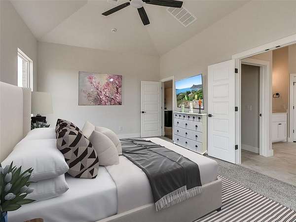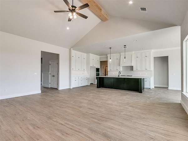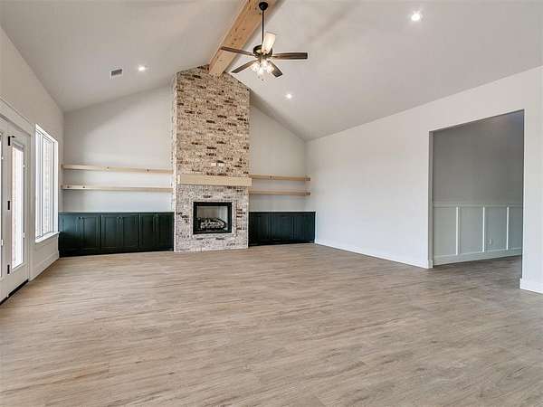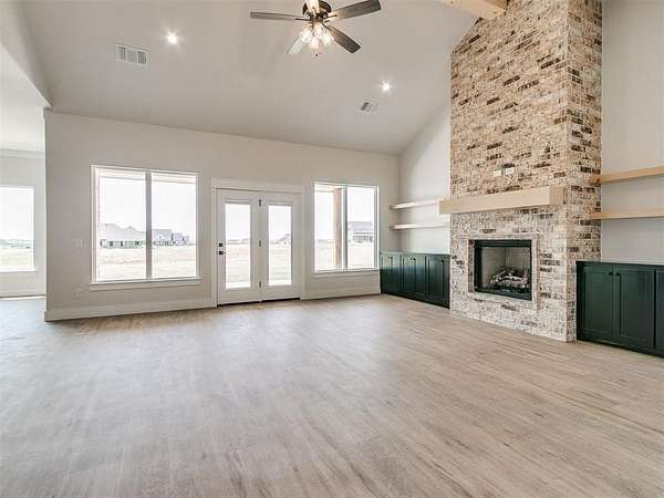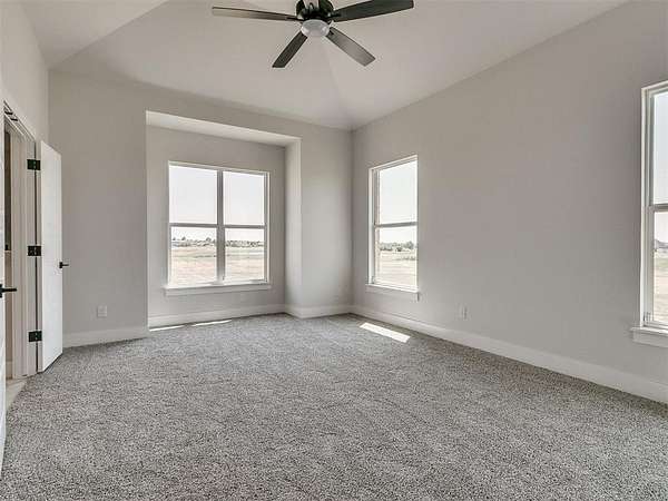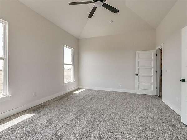 4-bedroom, 3-bathroom home on 2 acres at 4253 Hawthorne in Piedmont. The floor plan features a large living area with oversized windows for natural light and a 3-car garage. The kitchen is equipped with upgraded GE appliances, soft-close cabinets and drawers, and a large Australian walk-in pantry. The primary suite includes a bathroom with a walk-in shower and dedicated vanity, plus a utility room attached directly to the primary closet. Two secondary bedrooms share a Jack and Jill bath, while the fourth bedroom has its own full bath. This home offers plenty of space and a practical layout.