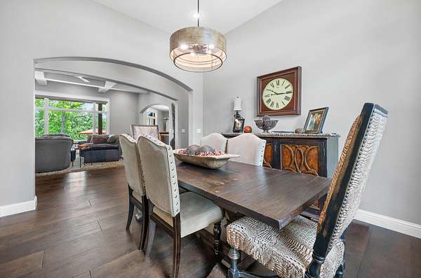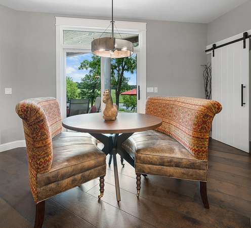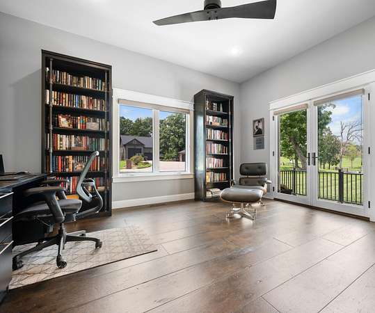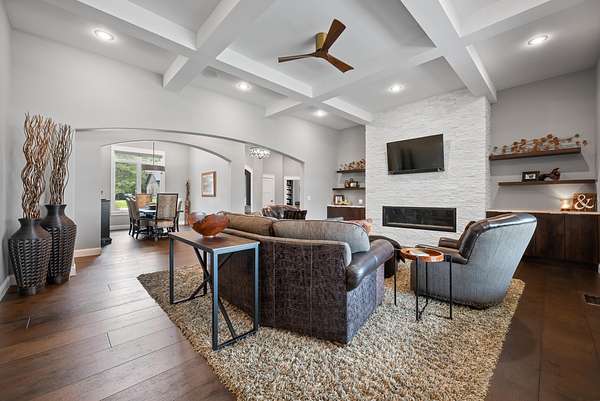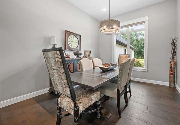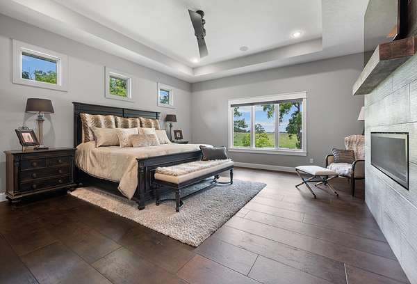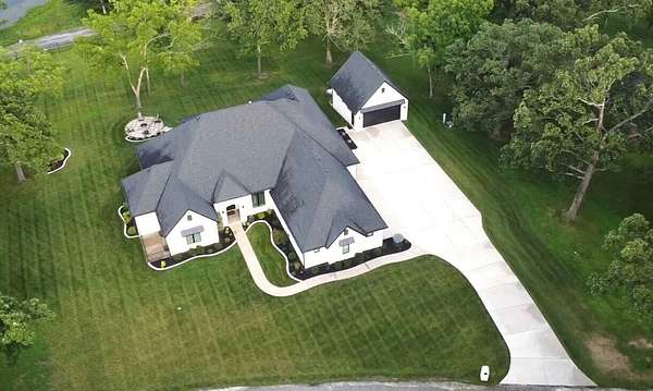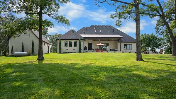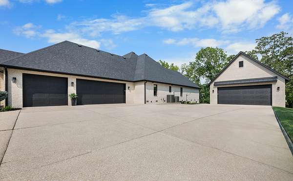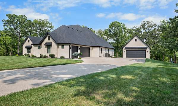 Welcome to Oak Springs!Tucked inside a gated community just north of Bolivar, this stunning custom-built Millstone Homes masterpiece built in (2020) offers 3,533 square feet of thoughtfully designed living space with 3 bedrooms, 2.5 baths, a 3-car attached garage, and an impressive 24x26 detached 2-car garage/shop.From the moment you arrive, the brick and stone exterior with bold black accents sets the tone for the elegance within. Built with 2x6 walls and featuring zoned dual-fuel heating for maximum energy efficiency, this home blends beauty with quality craftsmanship. Positioned to capture breathtaking sunrise views, the setting feels park-like and picture-perfect.Step inside and prepare to be wowed. The spacious living room showcases a striking stone-accented gas fireplace, unique ceiling detail, and manufactured hardwood flooring. The chef's kitchen is a showstopper with crisp white cabinetry, quartz countertops, stainless GE Cafe appliances (including a French door double oven), and an oversized island offering additional storage and prep space. A formal dining room and sunny breakfast nook provide ideal spaces for gatherings and everyday living.The primary suite is a true retreat, complete with its own stone gas fireplace and serene views. The luxurious en-suite bath features a soaking tub, oversized walk-in tile shower with decorative band, and a vanity you'll love. The custom walk-in closet includes abundant built-ins -- even a dedicated shoe and handbag carousel.Additional highlights include: Click on more!