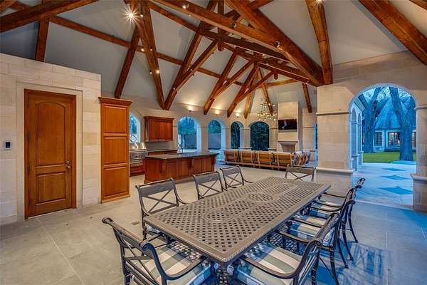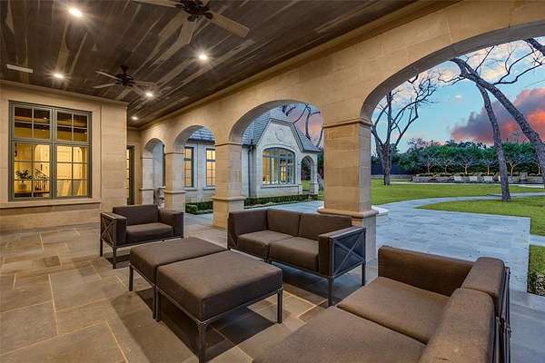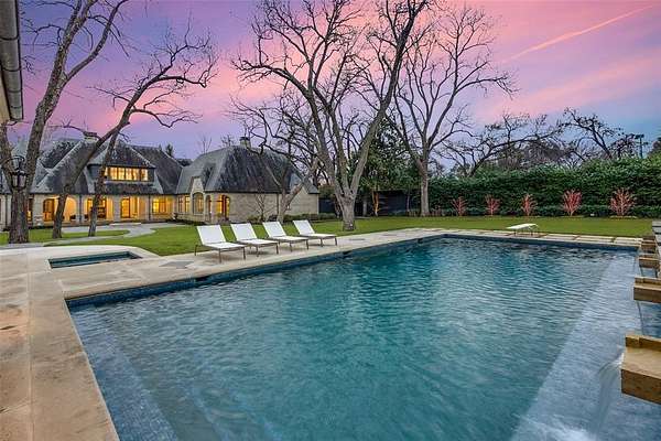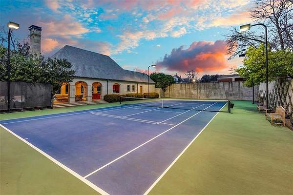 This Private French Estate with tennis court is nestled behind secure gates on two beautifully landscaped acres, offering timeless architecture, extraordinary privacy, & extensive recent upgrades. Built by Cy Barcus and designed by renowned architect Wilson Fuqua, the 11,056-square-foot residence showcases impeccable craftsmanship, grand scale, & sophisticated living. A dramatic foyer with a sweeping staircase opens to elegant formal living & dining spaces, refined archways, & a gracious family room featuring a fireplace, bar, & wine cellar. The fully renovated gourmet kitchen is equipped with new custom cabinetry, countertops, Wolf & Sub-Zero appliances, oversized island, double ovens, built-in refrigeration, & a butler's pantry. The oversized primary suite is secluded on the main level & includes a sitting area with blackout shades, fireplace, expansive his-and-hers closets, & a completely remodeled spa bath with designer finishes. Upstairs offers four spacious ensuite bedrooms plus a large game room & kitchen. Designed for effortless entertaining, the home features exceptional indoor-outdoor flow to a resort-style backyard with pool, outdoor kitchen, covered living areas, cabana, & tennis court. Extensive Improvements & Features Include: RTI smart home system; Lutron lighting; designer tile by Ann Sacks, Walker Zanger, & Artistic Tile; updated bar, family room, study, dining room (with hand-painted Allan Knight wallpaper); new mini kitchen upstairs; new water filtration system, thermostats, sewer line, chimney cap; three-car garage with EV charging in each bay; Complete wood, iron, & chain-link perimeter fencing for maximum security; Expanded drive & improved motor court & porte cochere; Renovated fountain with bluestone surround & new pool walkway, & MORE! A rare opportunity to own an updated, architecturally significant estate offering privacy, scale, & luxury amenities in a premier Dallas location. Conveniently located near the private school corridor!
