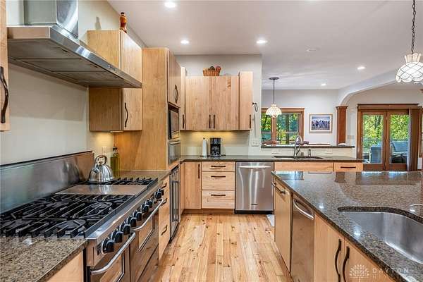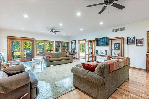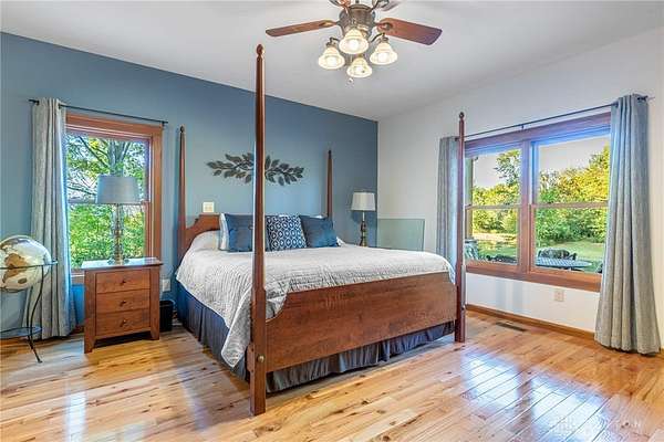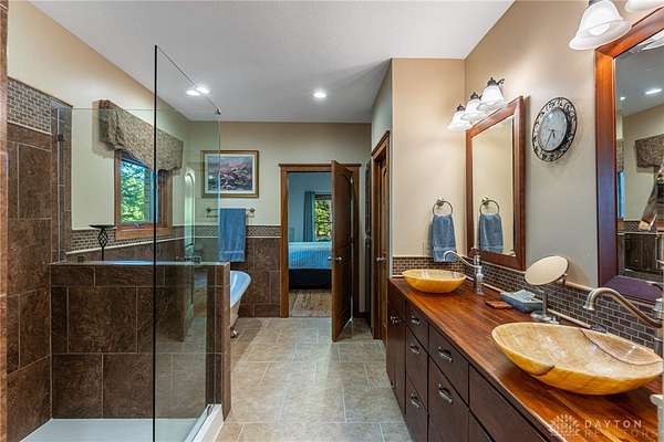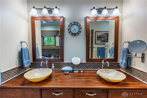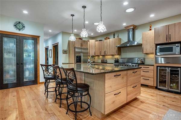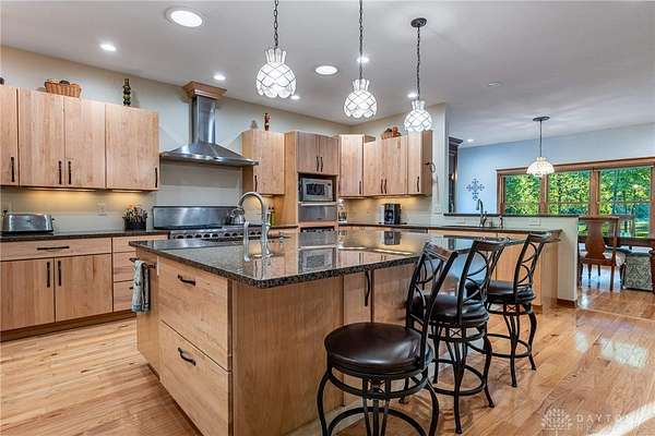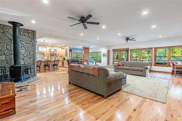 Step into a one-of-a-kind estate where luxury, craftsmanship, and nature seamlessly combine. The first floor features hardwood floors throughout and a spacious great room with an open-concept layout anchored by a wood-burning stove. A study with a closet offers flexibility as a home office or potential third bedroom on the main level. The mudroom off the garage includes tile flooring. A large laundry room with tile floor, laundry tub, and ample cabinetry ensures practical convenience. Additional storage is available in the walk-in pantry. The gourmet kitchen is a chef's dream, featuring maple cabinets, granite countertops, and center island. High-end stainless steel appliances include a 6-burner gas range, double dishwashers, warming drawer, beverage refrigerator, range hood, and refrigerator. The primary suite offers a unique layout with two adjoining bedrooms sharing a luxurious primary bathroom. Hardwood floors flow through the bedrooms, and the spa-inspired bath features a double vanity, walk-in shower, clawfoot tub, heated tile floors, and two walk-in closets, creating a private retreat with exceptional comfort. finished walk-out basement with double doors leading to a paver patio with fire pit overlooking the pond. It includes: Full kitchen with granite countertops, bar seating, refrigerator, range, dishwasher, microwave, and adjoining dining area. Spacious living area and rec room. with insulated. Heat pump with propane backup; buried 1,000-gallon propane tank is owned. Two 200-amp electrical service panels. Large covered deck with wood-burning fireplace. Paver patio with outdoor grill, water, and electric. Large stocked front pond and small back pond for irrigation.Aerators in pond; water hydrants for pond and chicken coop. This estate offers a rare combination of luxury, privacy, and outdoor beauty. This property is a true retreat ready for your family to call home.