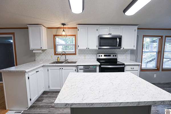 Two properties on 3.51+- acres just minutes from the lake! This unique opportunity includes two 3 bedroom, 2 bathroom homes plus multiple garages and shops, perfect for investment, extended family, or a private retreat. Great opportunity to have both properties for investment purposes or to live in one and lease out the other. 4256 Barge Island has 1,736 sqft and been beautifully updated with laminate and wood flooring, a modern kitchen, sunroom, and a primary suite with a soaking tub. 4264 Barge Island is a 2001 Fleetwood Stonecreek doublewide offering 1,680 sq ft along with a 720 sq ft garage, carport, 864 sq ft workshop, and storm shelter. Currently leased at $1,450/month for immediate income. With plenty of space, versatility, and location on your side, this property blends lifestyle and investment in one.