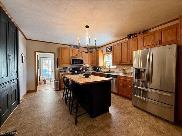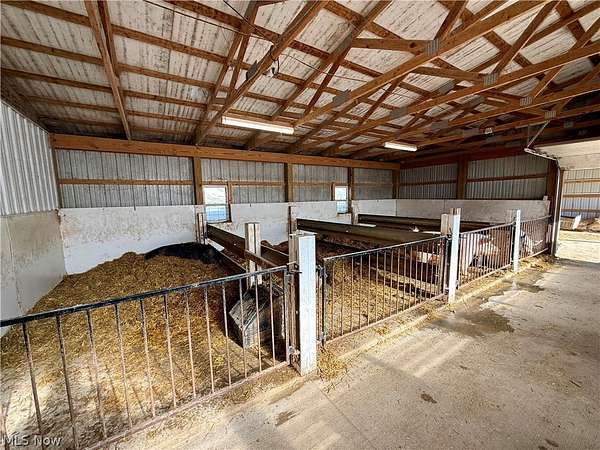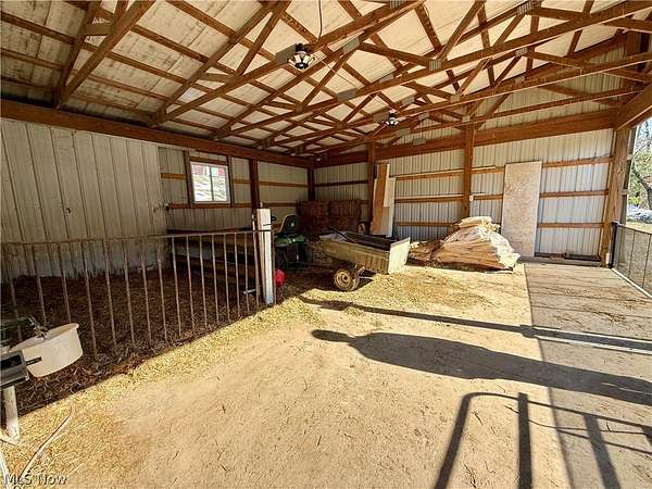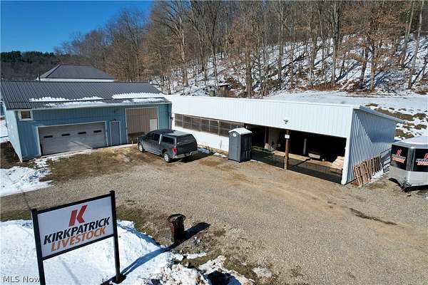 One-of-a-kind country retreat on 8 beautiful acres! This charming 4-bedroom, 2-bath home blends rustic farmhouse appeal with modern comfort and thoughtful updates throughout. Step inside to a warm and inviting living space featuring a stunning kitchen with a newly built island, newer stainless steel appliances, and plenty of room to gather. The main-floor master suite and convenient main-floor laundry offer easy living, while three additional bedrooms upstairs provide space for family or guests. A newer metal roof, heat pump, oil furnace, and newly certified wood burner in the basement ensure comfort and efficiency year-round. Enjoy incredible spring-fed water enhanced by a UV light system - truly amazing quality. Outside, relax on the covered front porch overlooking peaceful wooded views or unwind on the rear patio area. The home also features an attached carport and a detached two-car garage. Animal lovers, hobby farmers, or entrepreneurs will appreciate the custom-built, heated pig breeding and show barn complete with a custom ventilation system( 40x32, and 88x24 addition). Ideal for livestock, dogs, 4-H projects, or easily converted into a heated workshop or storage facility. An additional outbuilding, formerly a chicken coop, provides even more storage or small-animal space. Excellent access to all buildings makes daily operations convenient and efficient. The mostly wooded acreage is loaded with wildlife, including whitetail deer and turkey, offering hunting, recreation, or simply peaceful nature views right out your door. Located just minutes from Atwood Lake in Dellroy and only 15 minutes to Carrollton, this property truly offers the best of country living with convenience nearby. This exceptional property has a little bit of everything - charm, functionality, acreage, and opportunity. Don't miss your chance to make it yours!