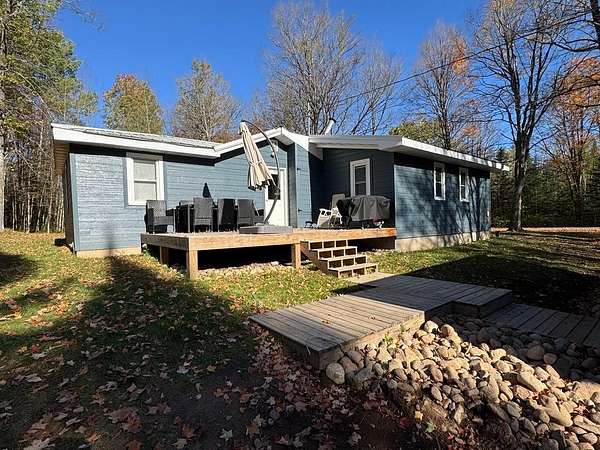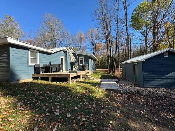 Very private setting and fantastic Up North getaway featuring 7.11 acres, a 2064 sq ft 4+ car garage, 10x20 storage shed, woodshed and 3-bedroom year-round home! The home offers a new block 4 ft foundation, all new Smart Siding, new deck and newer drilled well! The hot water heater and windows were new approximately 5 years ago and all the buildings have metal roofs! The garage offers upper storage, work bench and shelving! Such a beautiful setting with level land, loaded with mature hardwood and pines. Home comes almost completely furnished, is located with direct access to the snowmobile trails and is close to many great area lakes! Keep all the land for yourself, or sell off 1 or 2 of the parcels.