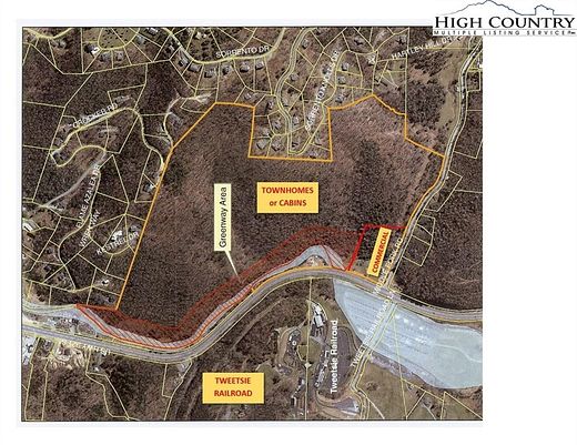 Just right for a "Mountain Cottage & Eco- friendly Development". ADJUSTED & REDUCED! 74 ACRES - now for sale across from Tweetsie Railroad in Blowing Rock, North Carolina. This includes Middle Fork Greenway trail to front property, presenting a perfect opportunity for a bed and breakfast, hotel and restaurant, rental cabin/Adirondack development on interior land. Easement in place to access this tract from Highway 321 South with a bridge. Entrance from Tweetsie Railroad being lined up with Middle Fork Road to align with the stop light. Most communities name a greenway trail as a top amenity that promotes a positive buyer interest. It is exciting that this trail will go under U.S. Highway 321 South and connect to the trail on the property of Tweetsie Railroad. Eventually, The Middle Fork Greenway trail will traverse the river from Blowing Rock to Boone, North Carolina. Located between Blowing Rock and Boone, North Carolina, the tract goes up to Sorrento Forest and features fabulous views. Development plans would be governed by the Watauga County Planning and Inspections Department.