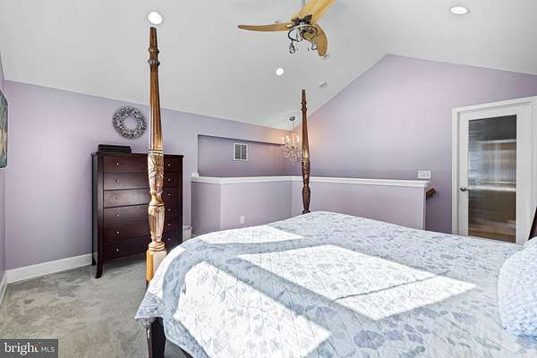 - Bar, Carpet, Ceiling Fan(s), Combination Kitchen/Dining, Dining Area, Eat-In Kitchen, Entry Level Bedroom, Exposed Beams, Gourmet Kitchen, Island Kitchen, Primary Bath(s), Recessed Lighting, Skylight(s), Stall Shower Bathroom, Table Space Kitchen, Upgraded Countertops, Walk-In Closet(s), Wood Floors, Wood Stove