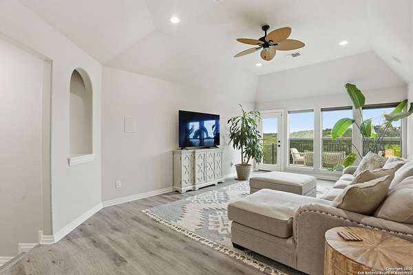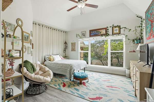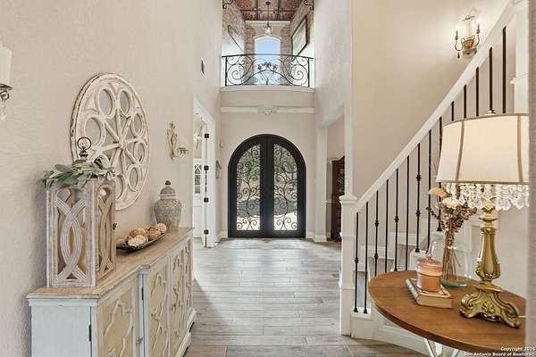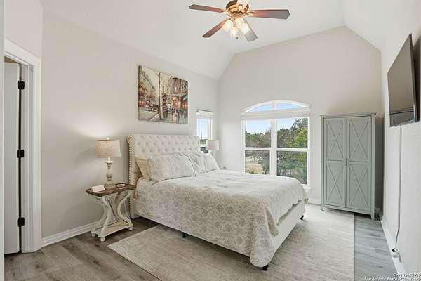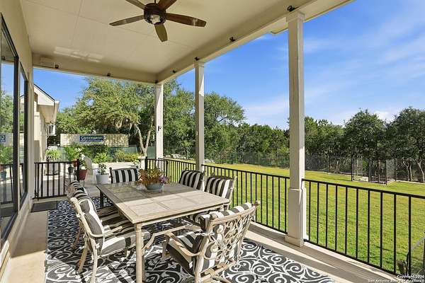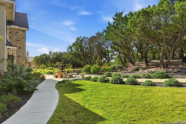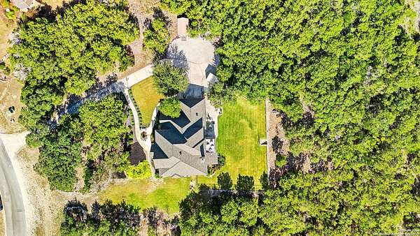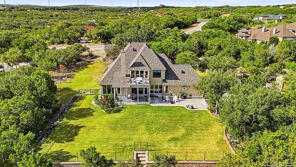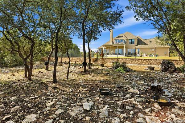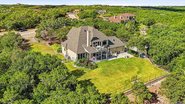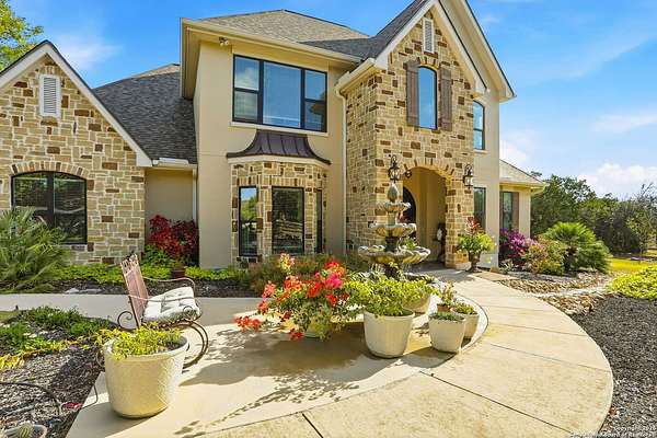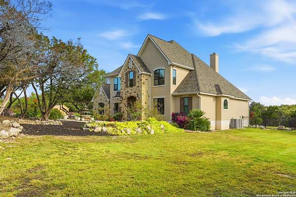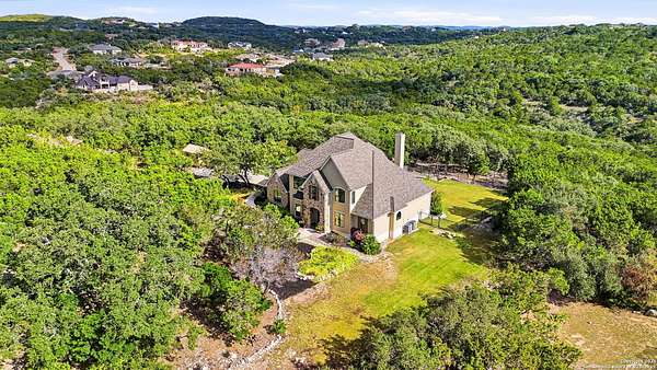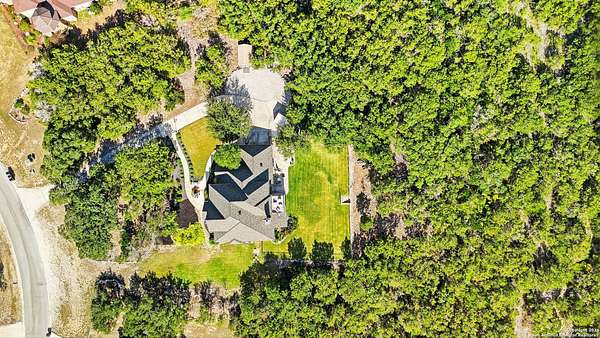 Stunning Hill Country Retreat in Laurel Canyon Ranch....Welcome to this exceptional five-bedroom, 4.5-bathroom Hill Country home nestled in Laurel Canyon Ranch, set on 3.5 acres backing to a greenbelt and located on a quiet cul-de-sac. Enjoy privacy, space, and breathtaking views within a neighborhood offering a 600-acre nature preserve, fishing pond, and walking trails. Wildlife sightings and serene surroundings make this property truly special. A dramatic 22-foot entry and foyer with a curved staircase creates an unforgettable first impression-perfect for showcasing a 12-foot+ Christmas tree. The home features 10-foot ceilings and 8-foot interior doors throughout, enhancing the open and airy feel. The spacious island kitchen includes a walk-in pantry and flows seamlessly into the breakfast nook and living area, highlighted by a stone fireplace and expansive back windows overlooking the covered porch and fenced backyard. The main-floor primary suite offers floor-to-ceiling windows and direct access to the covered porch. The Texas-sized primary bathroom features a barrel ceiling, double vanities, oversized shower, jetted garden tub, and abundant storage. Also on the main level are a second bedroom with a walk-in closet and bathroom, a formal dining room, a half bathroom, and a dedicated office with a wall of built-in desks-ideal for working from home. Upstairs you'll find three additional bedrooms, all with walk-in closets, two full bathrooms (including a Jack-and-Jill), and a large second living area with direct access to the second-story balcony, where the views truly shine. To top it all off, this home offers exceptional long-term value and peace of mind with a 2025 roof, updated 6-inch gutters, and two solar-powered Attic Breeze systems completed in September 2025. These major upgrades not only enhance energy efficiency and durability but also significantly reduce future maintenance costs. The transferable warranty adds even more value, making this home a smart and secure investment for the next owner. Additional Features & Upgrades: *Oversized 2-car garage with insulated doors and mini-split system *Fenced backyard with sprinkler system *Mature trees and thousands of dollars on landscaping *Central vacuum system, reverse osmosis system, and water softener *13 oversized windows replaced in 2023, many floor-to-ceiling *Wood plank porcelain tile throughout lower level (2024) *Waterproof luxury vinyl upstairs (2023) *Two hot water heaters (March 2025 & August 2025) *Five updated toilets (2023) *Dishwasher (August 2022) *Fiber internet currently being installed for the entire neighborhood *9 minute drive to the new HEB at Culebra and 211! This home truly has it all. Schedule your private showing today.