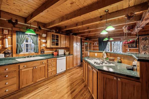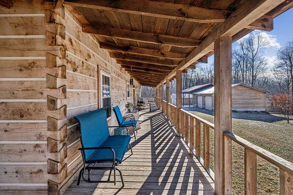 Escape to your own private cabin retreat with this custom-built log home set on 30+ rolling, wooded acres--a true "permanent vacation" setting. Crafted with rustic elegance and modern comfort, the home features THERMASEAL on all logs (21-year warranty conveys) and stunning Ambrosia Maple custom pull-outs and pro-organizer built-ins throughout.