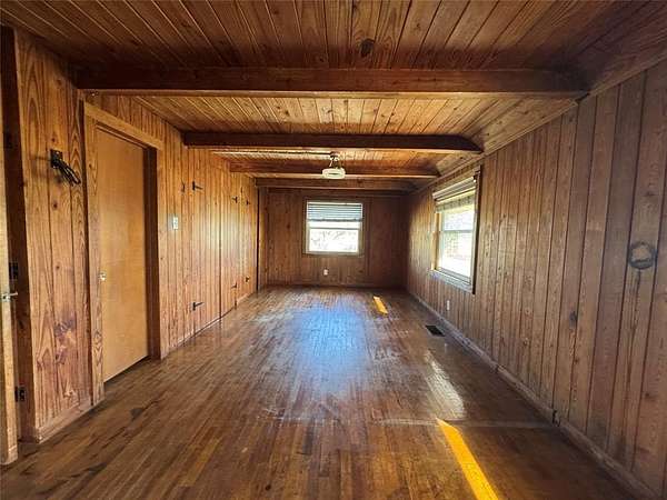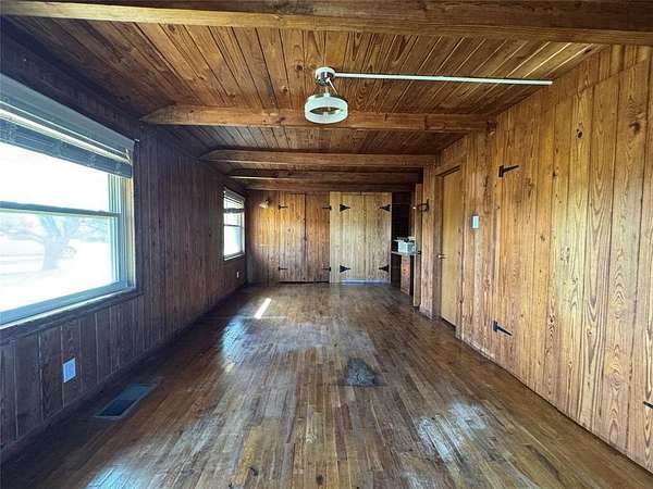 Country living on the edge of Abilene - this 10-acre tract with stone-clad, four-bedroom, two-bath half home sits just outside the city line, but benefits from city water and 1.7 mile proximity to I-20 and is situated just below Ft. Phantom Lake. The downstairs interior is clad in pine paneling and features timbered ceilings and unique architectural details. Open living and dining area. Tiled galley kitchen with breakfast nook and pine paneled cabinets continues the farmhouse feel. Two bedrooms downstairs - a generously-sized 23'x13' primary bedroom with seecondary bedroom or office that both share a full bath. Take you renovation ideas upstairs where you have two bedrooms that flank a central bathroom and upper hall. A central dog-run breezeway separates the main house from the large 2-car garage and guest house. The guest suite features a full kitchen and modern tiled bathroom with double vanity and would provide ideal revenue as a rental. Want more revenue? Free of the strictures of city zoning, add infrastructure to house temporary workers at the two, nearby data centers in RV's or mobile homes. A unique piece of property that would function well as either your home or something more.