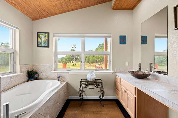 ZILLOW SHOWS INCORRECT BOUNDARY LINES. UNRESTRICTED! the serene beauty of this gentlemen's ranch, adjacent to 100 acre ranch, nestled in the heart of Blanco, Texas, and spread across over 15 picturesque acres. This enchanting property is adorned with vibrant wildflowers and numerous native trees, creating a natural haven for wildlife viewing. The comfortable one-story ranch home features a large kitchen and walk in pantry and 3 bedrooms and 2 full baths with office/flex room. Lots of natural light through the numerous windows and clerestory windows allow for airflow in living and primary bedroom. Two fireplaces for those cold Texas nights. Jetted tub in primary bathroom. The house has durable concrete floors and a generous primary suite with an en-suite bath, leading to a private patio-your own secluded retreat. Enjoy the outdoors from the comfort of your partial wrap-around porch that surrounds the home, perfect for relaxing and taking in the scenic views. For those with a passion for projects or hobbies, the property includes a versatile 30x50 RV barn with workshop complete with electric, water, and a carport and RV hookup, offering ample space and convenience. Equestrian lovers will appreciate the allowance for horses, making this ranch an ideal spot for both relaxation and recreation. Additionally, the presence of solar panels, 2750 gallon water tank and a stand by propane generator (Two 750 gallon propane tanks), underscores a commitment to sustainable living, blending modern efficiency with rustic charm. PEC bills are incredibly low and excess power can be sold back to PEC. Embrace a lifestyle of tranquility and connection with nature in this exceptional Blanco ranch. Wildlife Valuation for lower taxes. Convenient to Austin, San Marcos, Fredericksburg and San Antonio. Sprinklers in yard, water softener and an outdoor shower. Washer/Dryer may convey.
