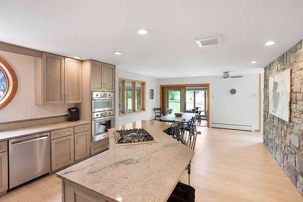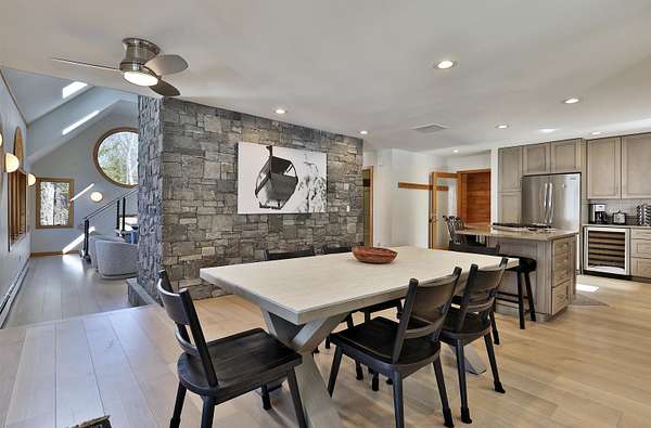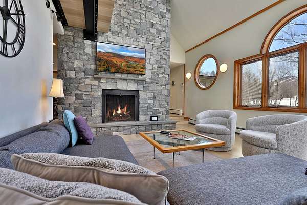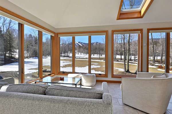 Stunning Killington Estate, Stellar Location! This fabulous property has expansive mountain views in a Vermont setting. Enjoy privacy while being less than 1/2 a mile to the Killington restaurants/nightlife & 2 miles to the K1 Lodge. This property has the extraordinary combination of golf course frontage and unobstructed vistas of the Killington Mountain range. The recent renovations by renowned architect Robert Carl Williams include large round custom windows, wide plank white oak quarter sawn flooring & natural Vermont granite, which is seen throughout this magnificent home. The open concept floor plan is ideal for entertaining. The chef's kitchen & large, connected open dining room are steps from the sunroom with its floor to ceiling windows that integrate the 1.5 acre landscape. There is also a main floor guest bedroom and full bathroom. The generous newly added primary suite is on the upper level featuring breathtaking year-round mountain views. This floor also has an additional bedroom and full bathroom. Visit the lower level to discover a family room with a fireplace, kitchenette, 2 offices, full bathroom, an additional sunroom, as well as access to the outdoor hot tub. You enter the home via the custom post & beam four vehicle carport. The property has an equally impressive fully furnished & equipped studio located above the heated detached two-car garage. Meticulously designed, constructed & maintained, this exceptional home will be enjoyed for generations to come.