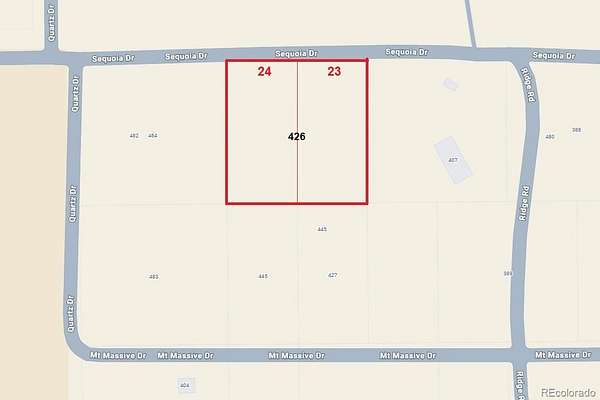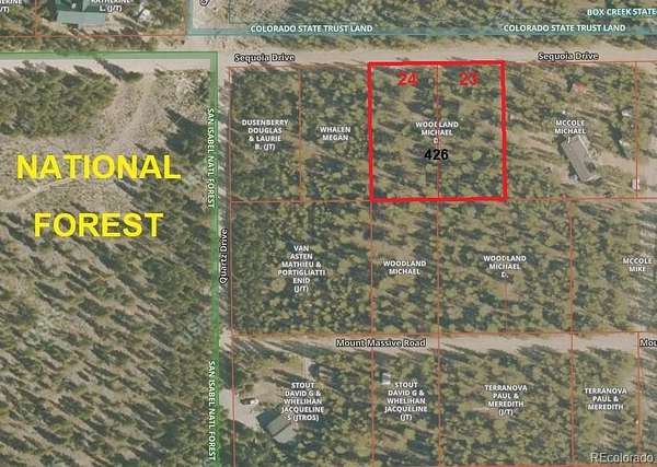 GoogleMaps will take you to this beautiful location. Here is one option of the many ways to get there: From Leadville take Hwy 24 South. From Buena Vista take Hwy 24 North. Go West on CO-82. Turn right on CR 10. At the intersection, go straight to stay on CR10. Turn left onto Cedar Dr. Turn left on Quartz Dr. Turn left on Sequoia Dr. The land is on the right side just past the driveway as you drive up the hill. The center of the lots is at the crest of the hill with views in all directions. The outline and property corner stakes with flagging are for reference for approximate locations of the corner markers and are not an ILC or guaranteed to be accurate. Buyer is responsible for their own due diligence. The water line is already in the roads surrounding the land and electricity is nearby. The 3 adjoining lots to the south are also available. They are an additional 1.38 acres (Approx .46 acres each) and include a water cert. See Listing #4525675, which includes these 2 Sequoia lots and the 3 Mt. Massive lots.