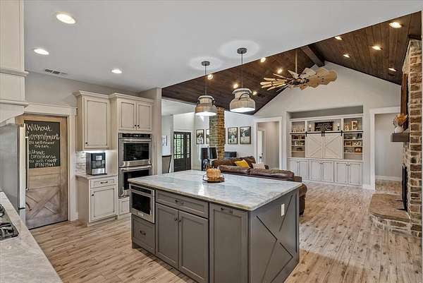 - Built-In Features, Chandelier, Decorative Lighting, Double Vanity, Eat-In Kitchen, Flat Screen Wiring, Granite Counters, High Speed Internet Available, In-Law Suite Floorplan, Kitchen Island, Natural Woodwork, Open Floorplan, Pantry, Sound System Wiring, Vaulted Ceiling(s), Walk-In Closet(s)