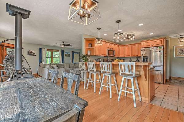 !!Back on the market at no fault of seller!!Looking for a country home located on a dead end private drive on 2.95 acres? This 3 bedroom 2 bath home offers Open floor plan, hardwood flooring, master suite, laundry room off garage with 1/2 bathroom, wraparound porch, outdoor fire grill on level concrete pad that enters into your 2 car garage. The primary suite accesses the patio area as well. Lower level is heated offers, unfinished space that could be a family room/den and walkout one car garage. 2 car garage on main level. The kitchen offers all newer upgraded stainless appliances The property offers storage buildings on property. You also have a wood burning fireplace and a gas propane fireplace. The home has spring water and a septic system so no water bill or sewer bill 100% contained . This home also is surrounded by a family farm that neighbors the property.
