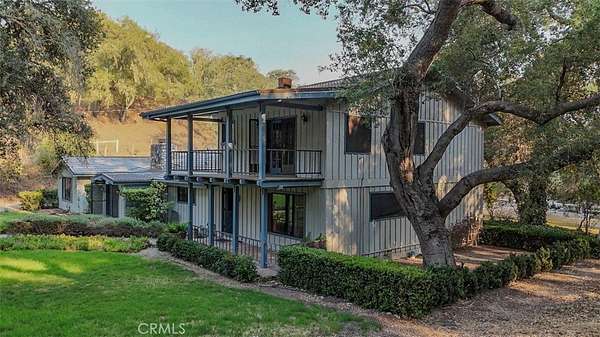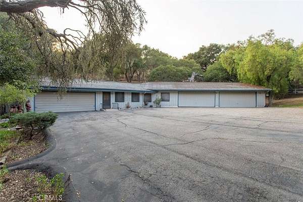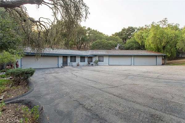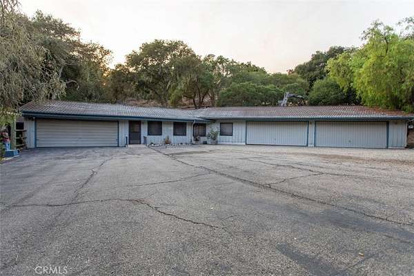 This expansive 20-acre property, dotted with majestic oaks and lined with pepper trees along the driveway, includes additional living spaces for versatility. A second home is ideal for a caretaker to maintain the acreage or as a rental for supplemental income. An attached 1-bedroom granny unit, connected to one of the two 2-car garages, offers further flexibility, complemented by an additional 4-car attached garage for ample storage or hobbies.