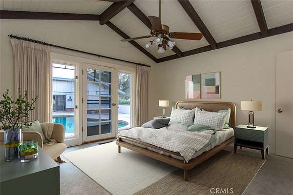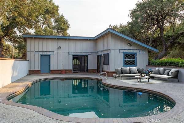 Outside, the living room opens to a private pool and pool house, complete with a spa, creating an inviting oasis. Nestled near the renowned Cachuma Lake Recreation Area, Los Padres National Forest, and charming downtown Santa Ynez, this property is surrounded by equine estates and endless outdoor activities.