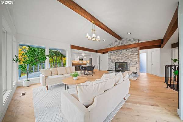Imagine a place where cherished memories are made-your own private estate on a gated 7.36 acres, a rare gem ready to become your family's generational retreat. Whether you envision an iconic homestead for unforgettable gatherings or a peaceful sanctuary of privacy and tranquility, this is a place you can truly call home. Experience the best of Columbia River Gorge living with this fully updated property featuring breathtaking views. This masterpiece offers a versatile layout with multigenerational options featuring a lower level with a full 2nd kitchen and separate entry. Vaulted ceilings, expansive windows, and spacious living areas create an ambiance of elegance and grandeur. Large primary suite on main level. All new kitchen's, quartz countertops, engineered hardwood flooring throughout, new water heater, interior/exterior paint, fixtures and more! Stunning tile workmanship throughout. Huge deck overlooking property and views! Covered paver patio! Large barn with a 2nd driveway ready for your needs. Beautiful pastures providing options for farming or animals. Ideally located just minutes from world-class hiking and biking trails, the Columbia River, and the iconic Vista House, yet only 10 minutes to the freeway and 20 minutes to shopping and dining. This stunning Gorge retreat offers privacy, beauty, and modern comfort in a truly one-of-a-kind setting. Definitely a must see!