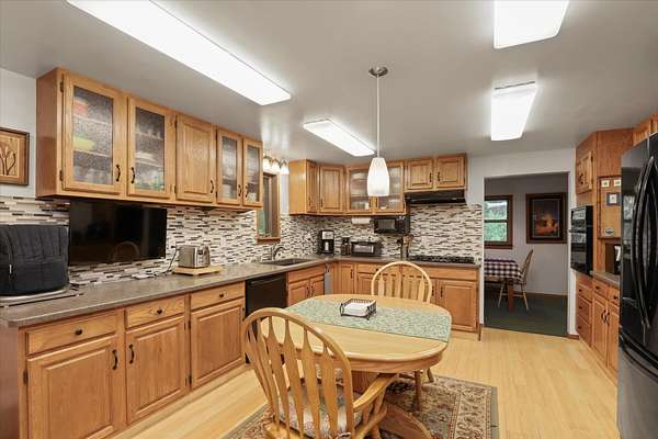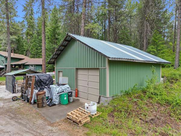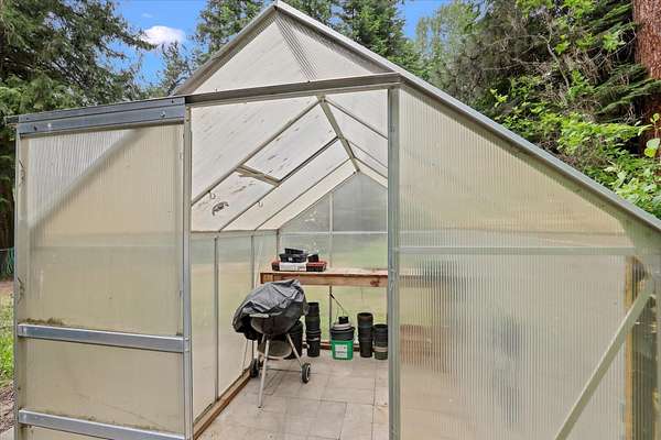 This comfortable home offers privacy and seclusion nestled in the tall timber. Just a couple miles from lakes and recreational opportunities. Lots of under-roof storage, Garage and shop space attached to the house along with a huge carport. Additional shop(30x30) and extra garage (24x24). Green house and garden space allow you to be self-sufficient here. Relax on the covered porch on those hot summer days and retreat to sit by the propane fireplace on the cold winter nights. Living spaces feature bamboo floors, comfortable living room has stove and bay window overlooking the landscaped lawn. Kitchen has corian countertops and cook top propane range. Family room has outside entrance to patio. This is NOT a driveby property, your broker must be present for showings. Cash only sale, call for more info.
