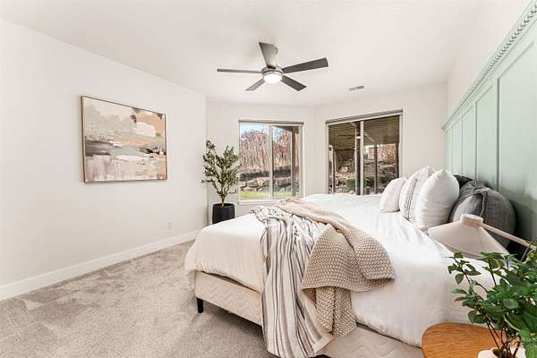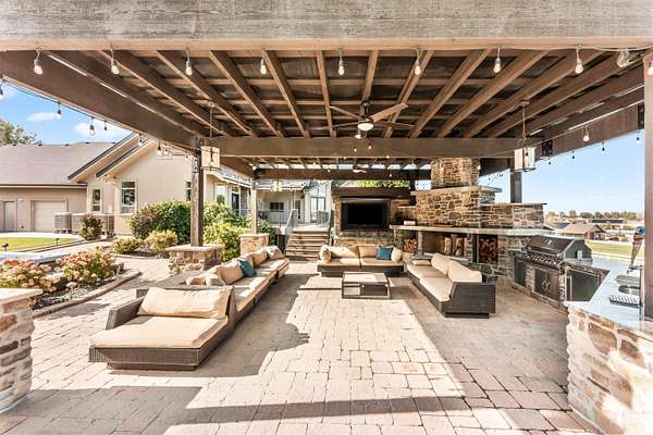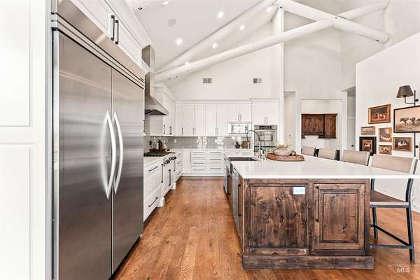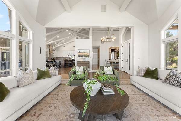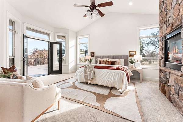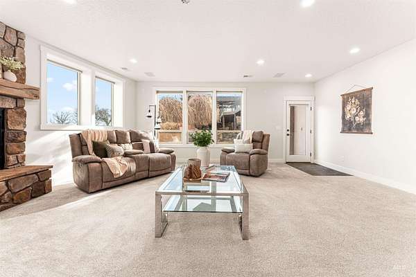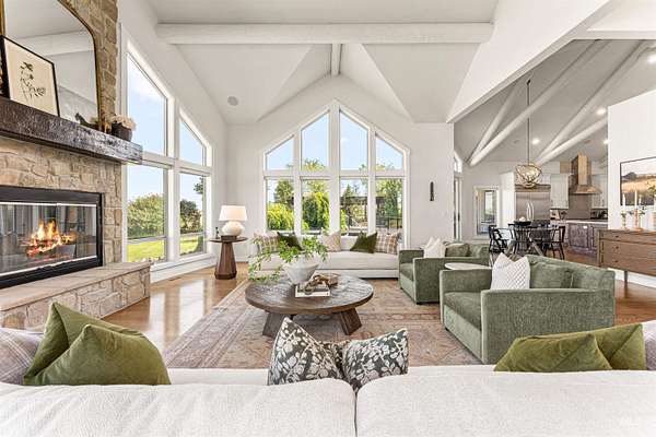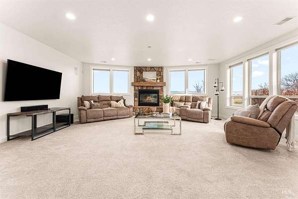 A rare 10-acre estate offering unparalleled privacy, versatility, and sweeping 360 degrees valley views. This custom-built ranch-style executive home blends timeless design with a modern refresh. Floor-to-ceiling windows soaring up to 18 feet frame breathtaking scenery, while a dramatic rock surround wood-burning fireplace anchors the main living space. Designed for entertaining, the home includes a refined wine & whiskey lounge complete with a full-size wine refrigerator and bar. The primary suite is a serene retreat with stunning views, its own fireplace, and private deck access. The nearly 3,000-sq-ft walkout basement offers exceptional flexibility with recreation space, a full kitchen, home office, and gym-ideal for multi-generational living or hosting extended guests. Outdoor living is taken to the next level with a dedicated kitchen and bathroom, overlooking the solar-heated saltwater pool featuring a water slide, jumping rock, and diving board. Enjoy resort-style amenities including a basketball half court, sand pit, fire pit, and expansive lawn space. The renovated barn adds incredible value with a full kitchen, bathroom, and loft-perfect as a guest house or easily convertible back to a true barn for horses. With ample room for a future riding arena on the back five acres, this extraordinary property offers a rare blend of luxury living, recreation and equestrian potential!