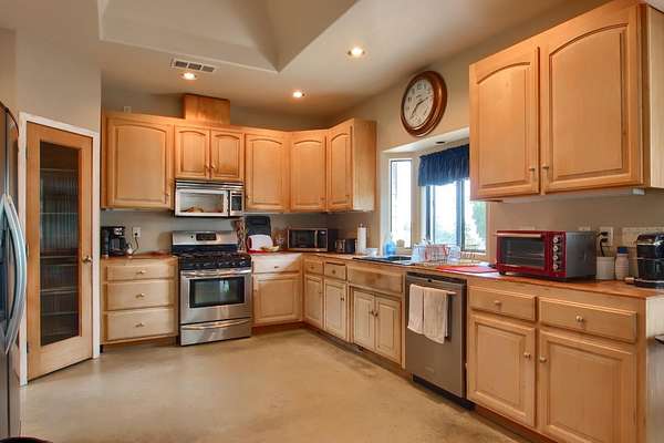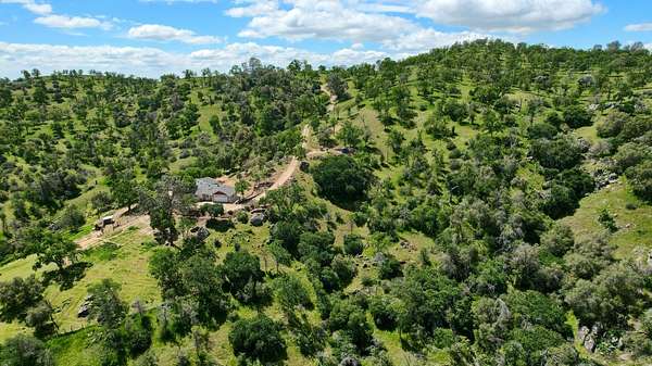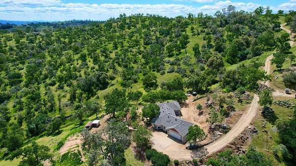 Secluded custom built 3 bedroom, 2 bath home on 20+/- acres! Just 15 minutes to Chukchansi Gold Casino and 30 minutes to Fresno. Lovely front porch greets you but entering this home is a joy. This floor plan has the living room, dining area and kitchen all open to each other with beamed ceiling, ceiling fans and recessed lights. The dining area has fabulous picture windows creating a rounded nook. The kitchen has beautiful wood cabinets, dishwasher, propane stove and a walk-in pantry. The hallway is lined with lots of storage cabinets and drawers. Laundry room includes a sink and cabinets. Bedrooms are very spacious and the guest bath has a charming vanity. The large primary bedroom offers a rounded wall of windows to enjoy the views with ceiling fan, recessed lighting and a gorgeous bathroom with fabulous tile shower. Great 2 car garage with a drive through bay. Wonderful view of distant mountains and your 20+/- acres with majestic Oaks. Perfect for your horses or your 4-H or FFA animals with fenced pens and shelters. There is minor work needed to obtain the final inspection for occupancy cert.