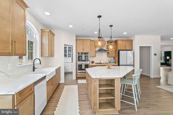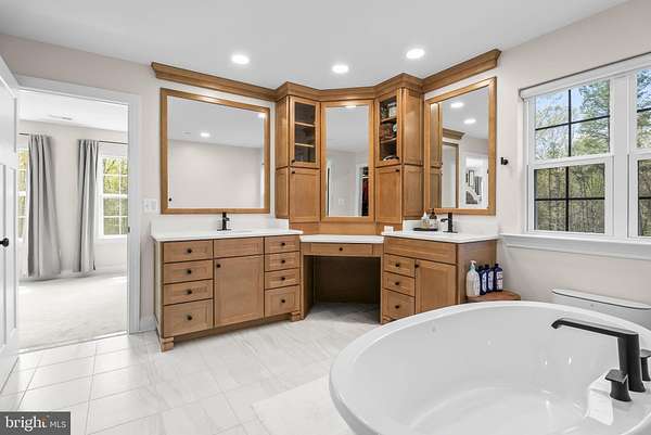 Welcome to refined living in this exceptional QBHI Fairfax model, perfectly situated on nearly two private acres and just 16 months young. Located in the highly sought-after Broyhill community of Leonardtown, this beautifully crafted home blends luxury, comfort, and thoughtful design at every turn.From the moment you arrive, you'll appreciate the expansive, mostly flat yard-ideal for outdoor enjoyment-with a pool, swing set, and storage shed already in place. The attached two-car garage is equipped with a Tesla charger, adding modern convenience to this stunning property.Step inside to discover a truly gourmet kitchen that will impress even the most discerning chef. Featuring striking white quartz countertops with elegant gray veining, custom tan wood cabinetry with burnished copper finishes, high-end multi-paneled Samsung appliances, and a charming farmhouse sink, this space is both functional and beautiful. The adjoining breakfast nook sits within a generous 4-foot bump-out morning room, filling the space with natural light.The family room is a showstopper with its cozy gas fireplace and dramatic floor-to-ceiling stone facade-perfect for gathering or relaxing evenings at home. The main level also offers a formal dining room, an expansive side-by-side office, a convenient drop zone with built-in storage leading to the garage, a private bedroom with a full attached bath, and an additional powder room for guests.Downstairs, the fully finished basement expands your living space with a large recreation area perfect for movie nights or entertaining, along with an additional bedroom and full bath.Upstairs, you'll find four generously sized bedrooms, including a luxurious primary suite complete with a sitting area, dual walk-in closets, and a spa-inspired bath featuring dual sinks with ample cabinetry, a soaking tub, and a spacious 6' x 6' deluxe shower. Three additional bedrooms share a well-appointed hall bath with dual sinks, and the conveniently located upper-level laundry room makes everyday living effortless.Nestled in a community known for its curated selection of craftsman-style homes and spacious lots, Broyhill offers both privacy and charm. Enjoy peaceful surroundings while being just minutes from downtown Leonardtown's shopping and dining, as well as nearby Dorsey Park for outdoor recreation.This is the one you've been waiting for-schedule your private tour today!