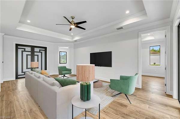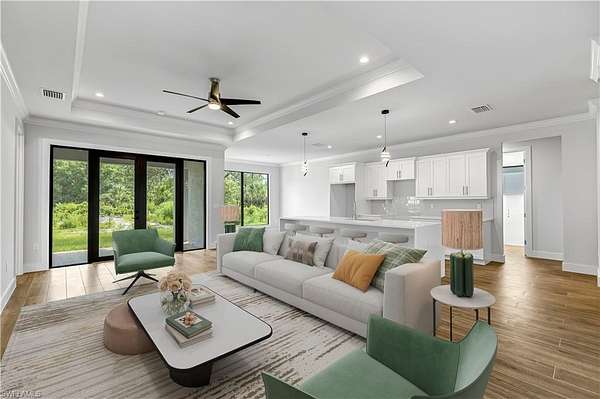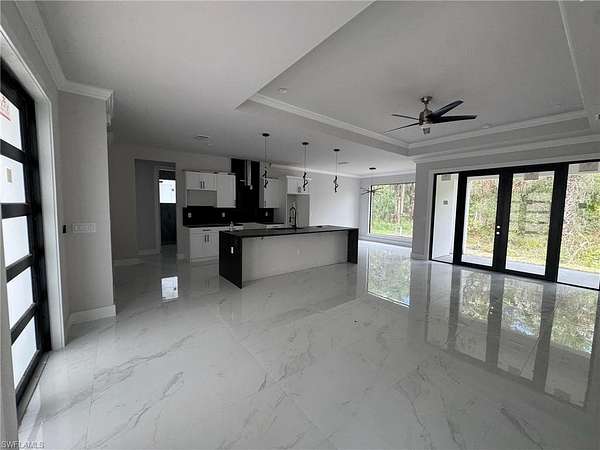 One or more photo(s) has been virtually staged, AI generated or rendered. Home built in the area of Golden Gate Estates on a AMAZING 2.73ac and RARE 100% upland lot, features 3 bedrooms + Den, 2 bath, & 2 car garage! Living area of 1,656 sq.ft and a grand total of 2,398 sq.ft. Upgrades include porcelain tile throughout, crown molding, quartz / granite countertops, stainless steel appliances, and solid wood cabinets! The kitchen has 2 pantries. The living room and master suite boast tray ceilings. Master wing features an oversized bedroom, 1 spacious walk in closet, double vanity, and glass door enclosed shower. The outside of this home will not disappoint either with a beautiful landscape, auto sprinkler system, and a summer kitchen in the large lanai. Impact resistant windows/doors! Your brand new home will be ready in May 2026! Pictures are from another same model home.