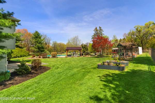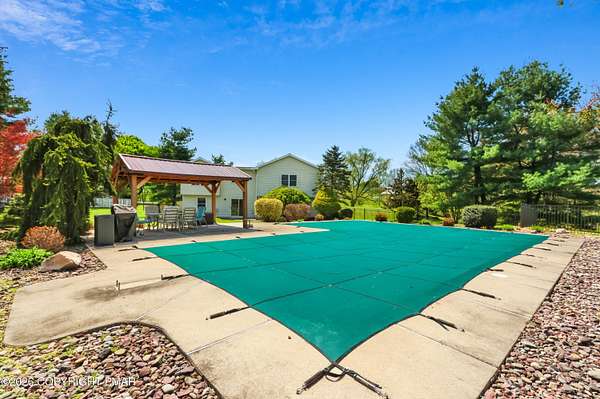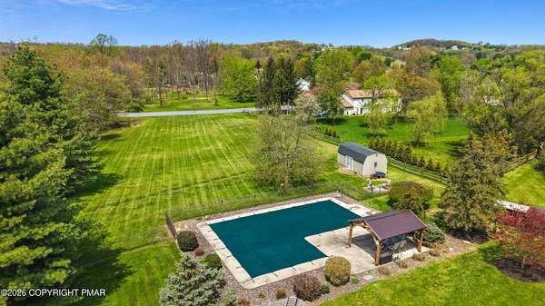 Space, privacy, and a park-like property come together in this expansive 5-bedroom home offering over 4,600 sq ft on a beautifully landscaped 2 ACRES with an inground concrete pool. Step outside to your own private retreat featuring a 46x20 in-ground pool, patio and pavilion, with a fenced yard surrounded with mature flowering trees, garden beds and a peaceful creek along the edge of the property. Inside, this is the kind of home you grow into, and never outgrow. With an oversized kitchen and dining room, like this, you'll host all year round. Center island for extra seating to gather around, a walk-in pantry, and an open layout to the living and bonus room, with wood plank flooring throughout the main level. The space continues into the Spacious Primary Bedroom with walk-in closet with custom shelving and large en-suite bath with dual sinks, jetted tub with separate shower. Three additional bedrooms and full bath on the main level. Plus Finished Lower Level with bonus rooms galore. Space to cozy up to the pellet stove and watch a game, got it. Space for a rec area to work out, got that too AND it comes with a view. Bonus room for guests, a craft room or an office, take your pick. Plus a half bath, laundry room, walk-in closet storage, oversized shed and two car attached garage. You'll have no worries here with a NEW Roof, NEW septic pump, NEWER hot water heater and pellet stove for efficiency and Central AC. So if you're looking for MORE ... More Square Footage, More Land, More Privacy, More Freedom, this spacious home in Washington Twp is your next move. Ask how to receive up to $5,000 lender credit towards closing costs or lowering your interest rate!
