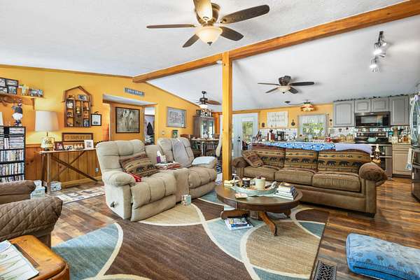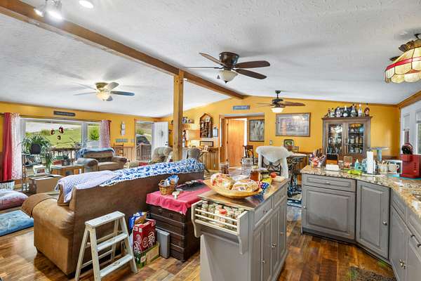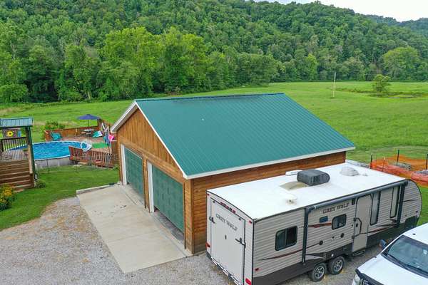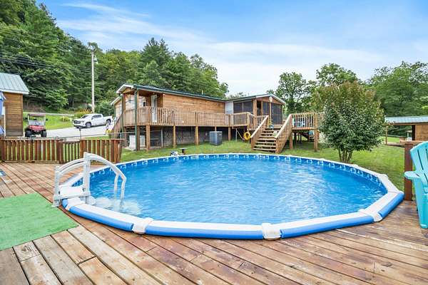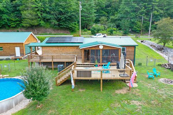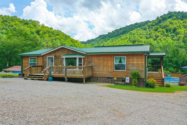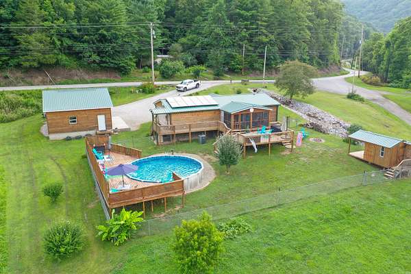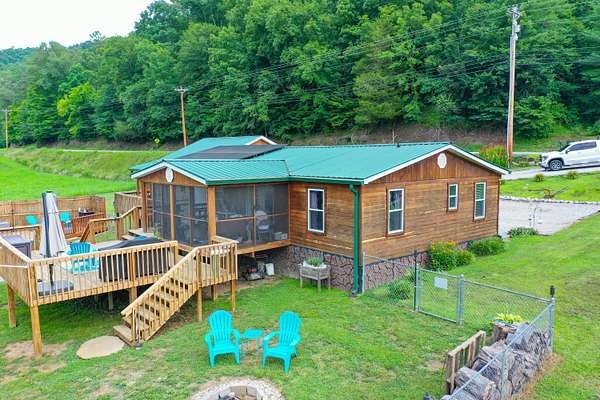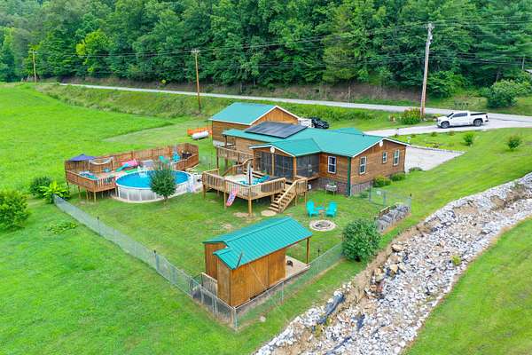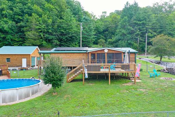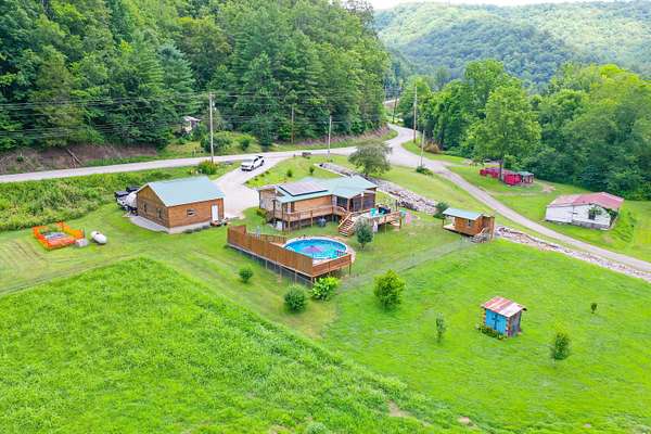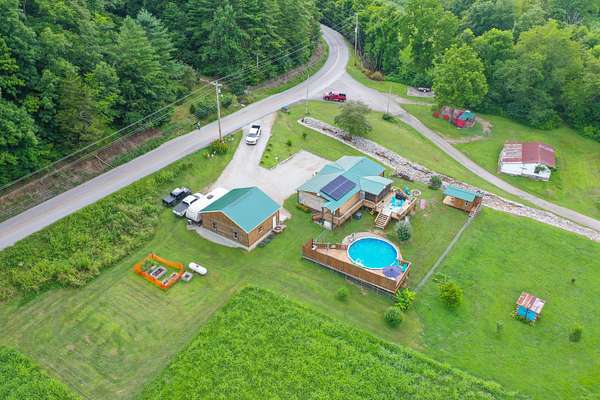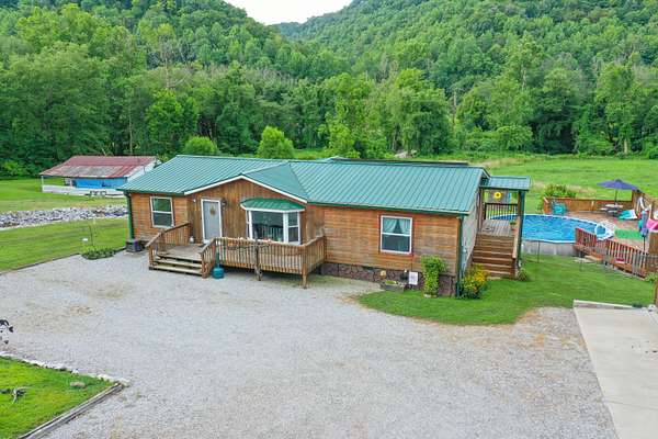 Welcome to peaceful country living in the beautiful hills of Kentucky! This completely renovated manufactured home, converted to real property, sits on 9.479 picturesque acres and offers modern comfort with rural charm. Renovated top to bottom in 2020, the home features all-new drywall, insulation, HVAC (heating and air), roof, flooring, double-pane windows, doors and more. The spacious, updated kitchen is very user friendly with granite countertops, soft-close cabinets, and included appliances - microwave that also functions as a convection oven. The bathrooms have been tastefully updated, and the generous master suite offers a quiet retreat. Enjoy peace of mind with a full security system and a wired-in Generac generator that powers the entire home automatically during outages. Energy efficiency is enhanced with solar panels on the roof, significantly reducing electric bills. Step outside to enjoy the 16x20 back deck, a 10x16 screened-in back porch, a charming front porch, and an above-ground pool with extensive decking - 25x30 detached garage with electricity, a shed, and even a chicken coop. Elevation certification taking home and buildings out of flood zone.