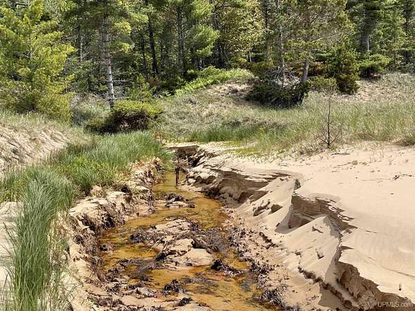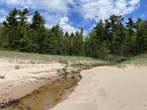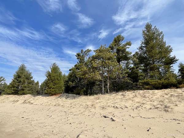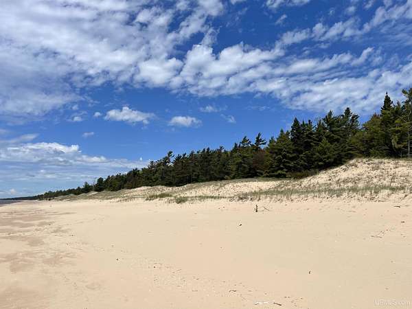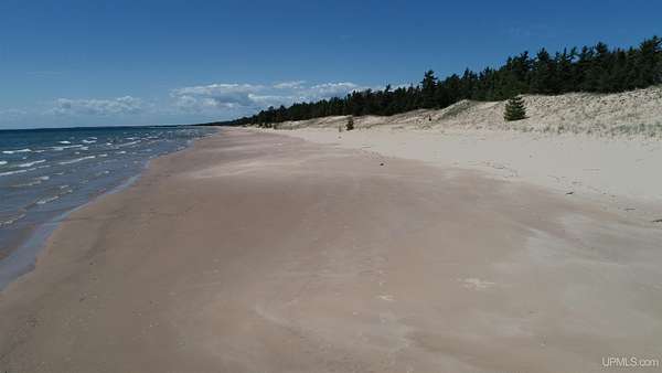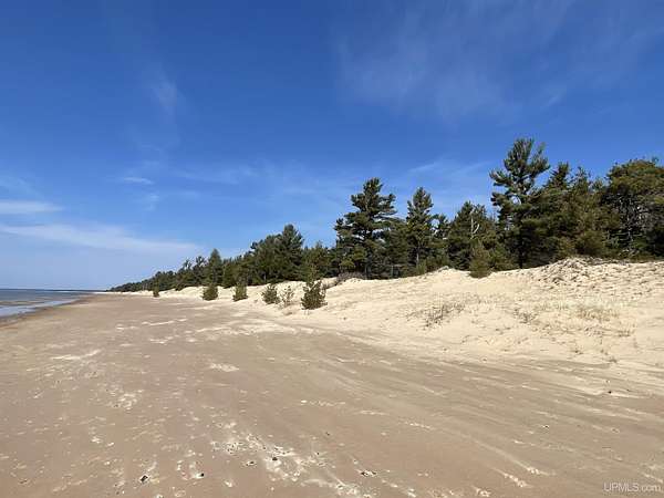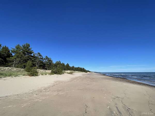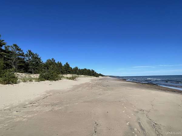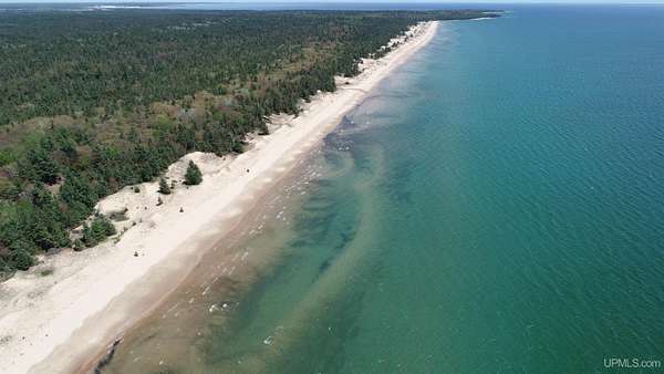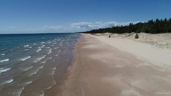 A once-in-a-generation offering on the north shore of Lake Michigan, this remarkable 120-acre estate features an uninterrupted 4,264 feet of sugar-sand beach along one of the most private stretches of shoreline in the entire Upper Peninsula. Situated on Top O’ the Lake Road, a quiet private road serving only a handful of premiere properties, this tract delivers unmatched seclusion, pristine natural beauty, and creative versatility. The rolling topography, mature forest cover, and miles-long walking opportunities make this a rare opportunity for a family compound, conservation investment, or world-class retreat. Wide, level, walk-in beach frontage and endless lake views create a setting that feels untouched and timeless. Parcels of this scale and quality simply do not exist on today’s market — this is one of the finest large-acreage Lake Michigan holdings available today!