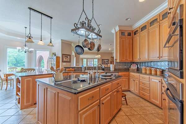 Looking for perfection in the country - This is it! Over 4,700 heated sq ft on 1st & 2nd floor then basement (heated & cooled but not completely finished has 2,600 sq ft). Well-built brick home has 4Br, 5Ba & safe rm. Main floor has great rm w/fireplace & beautiful doors opening to patio & salt pool with waterfalls, dining room, kitchen has breakfast nook, custom cabinetry with baking center, cooking sink area, granite counters, subzero refrigerator & icemaker, geothermal heating & air. On the main floor is the Master bedroom w/beautiful sandstone fireplace & bath, a 14x14 office off the master. The master has a huge bath w/whirlpool, separate shower, huge walk-in closet. 2nd guest bedroom & bath also on main floor. 2nd floor w/beautiful staircase (or take the elevator), has 2 bedrooms, 2 baths, hobby/craft room & media room. Pool & patio overlook large stocked lake (bass & catfish), large 40x50 shop w/4 post lift. All this on 24+ acres, non restricted. All the bells & whistles!