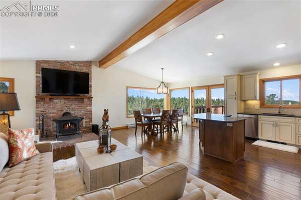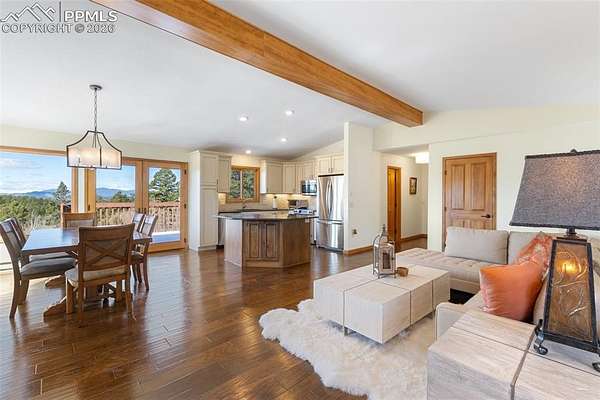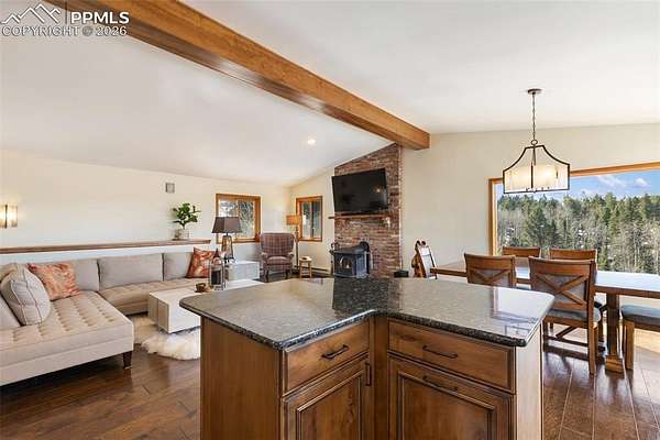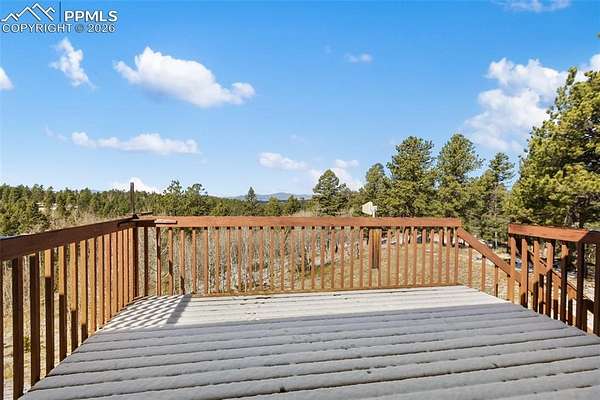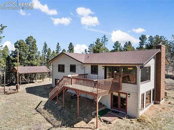 Discover the perfect blend of privacy, functionality, and breathtaking natural beauty on this exceptional 20-acre property-fully usable and surrounded by stunning mountain views in every direction. This inviting home features a warm and welcoming great room centered around a freestanding wood stove, with French doors that open to a spacious wood deck-perfect for soaking in the scenery and fresh mountain air. The updated kitchen is a standout, boasting custom cabinetry, granite countertops, a tiled backsplash, and stainless steel appliances, all flowing seamlessly into a spacious dining area filled with natural light from expansive windows. The main level offers convenient living with a large primary suite, complete with an attached bath and beautifully customized shower. Downstairs, the fully finished lower level provides an enormous family room with walk-out access, a second wood-burning stove, an additional spacious bedroom, full bath, and laundry-ideal for guests or multi-generational living. Extensively renovated in 2015, the home includes upgraded plumbing and electrical systems for peace of mind. A new lifetime composite roof tops the home, and the pole barn also features a newer roof. An oversized 2-car garage provides ample space for vehicles, hobbies, and all your recreational gear. The land is equally impressive, with a running creek along the north boundary that draws abundant wildlife, creating a true Colorado experience. With no covenants, you have the freedom to bring your animals and live the lifestyle you've been dreaming of. Located just minutes from national forest access, outdoor adventures await-ATV riding, mountain biking, horseback riding, hiking, and more. Bonus opportunity: The adjoining 20-acre parcel, complete with its own home, is also available-offering the rare chance to own a total of 40 acres with an additional residence. A property like this is more than a home-it's a lifestyle.