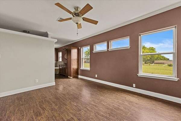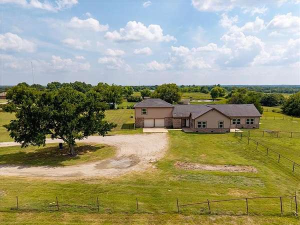 Enjoy the perfect blend of country living while still having city convenience with this beautiful 3 bed, 2 bath home recently remodeled in 2023 featuring all new windows, along with new roof being installed soon! Perched atop a gently sloping hill with nearly 5 acres along a well-maintained, low-traffic FM road, this property offers privacy, views, and peaceful surroundings--just minutes from shopping, restaurants, and other local amenities. Inside, you'll find a spacious living area with a cozy fireplace and a functional layout that includes a 2-car garage. Above the garage is a versatile loft space, perfect for a kids' playroom, media room, or home office. Step outside to enjoy the covered back patio--ideal for relaxing or entertaining while overlooking your open acreage. The land is partially fenced and ready for horses, cattle, or any animals you'd like to bring along. A rare opportunity to enjoy the quiet of the country while staying close to town!