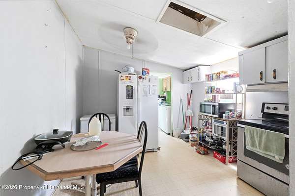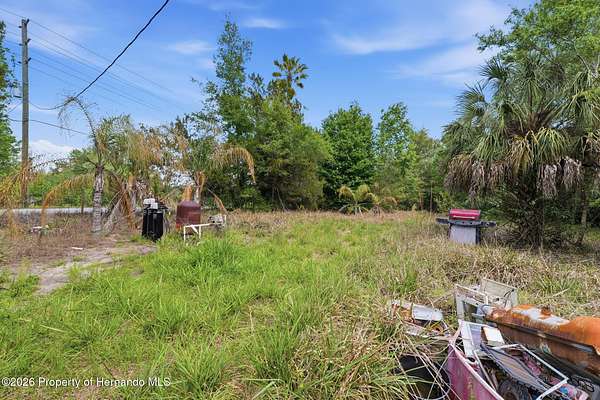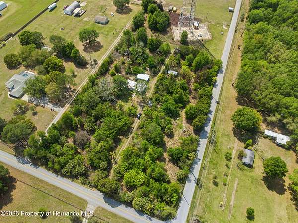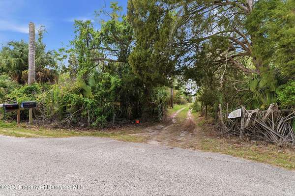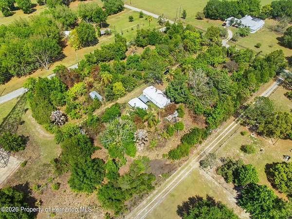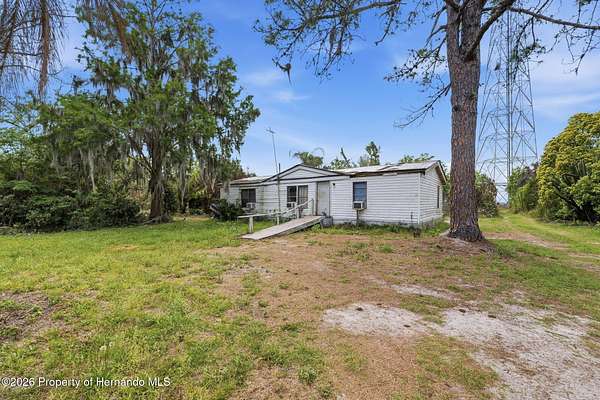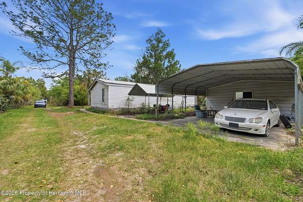 Situated on just over 3.6 private acres, this unique property offers a rare opportunity to own a peaceful, nature-filled setting with existing utilities already in place, making it ideal for those looking to renovate or build new. The property features a 3-bedroom, 2-bath double-wide manufactured home with an eat-in kitchen, open living area, and indoor laundry room. Electricity and water are already connected, with two wells (approximately 385' and 265' deep, both 4'' in diameter with 5-horsepower motors) and two electric meters previously supporting a working tropical nursery. The land itself is a blend of wooded areas and open pasture, offering both privacy and usable space, and is set far back from the road for a secluded feel. Additional features include multiple detached carports with concrete floors providing covered parking for up to three vehicles, a storage building, and an aluminum kennel with a metal roof and concrete base. Once a thriving nursery, the property is now overgrown but filled with mature tropical landscaping including Queen, Bismarck, Cabbage, Washington Fan, and Sago palms, along with flowering plants such as crepe myrtle, bottlebrush, turks cap, poinsettia, and unique varieties like dragon fruit cactus, Mexican cactus, and elephant ear plants. You'll find oak and cedar trees throughout, as well as a variety of fruit-bearing trees including mango, avocado, banana, papaya, orange, and pecan trees add to the property's charm and potential, while fertile soil makes it well-suited for gardening or agricultural use. Scattered potted plants from the former nursery remain on site, offering even more opportunity for restoration or expansion. Whether you envision bringing the existing home back to life or building your dream home in a private, lush setting, this property offers incredible potential and a truly one-of-a-kind landscape ready to be reimagined.