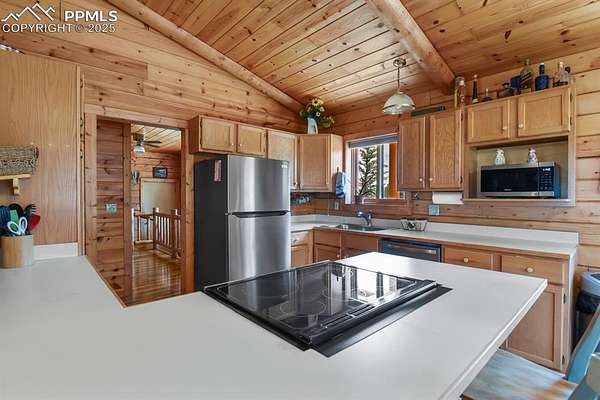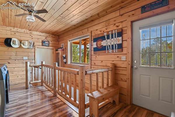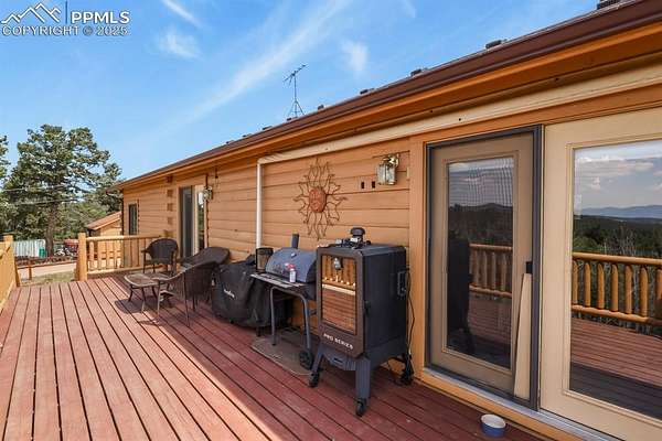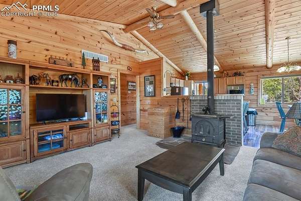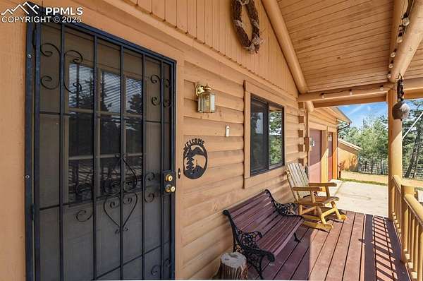 Wonderful Hobby Farm on 20 Acres - Ready for Your Animals! Discover the perfect blend of country living and modern comfort with this move-in-ready log home, perfectly set up for animals and ranch life. Situated on 20 beautiful acres, this property offers endless possibilities for hobby ranching, or simply enjoying nature. Step inside to an inviting open-concept main level featuring soaring vaulted ceilings, a cozy wood-burning stove, abundant natural light, and brand-new flooring. All essential living spaces are on the main level, including the kitchen, dining area, great room, primary suite with attached bath, powder room, and laundry. The finished walk-out basement provides even more space, with two additional bedrooms, a full bath, and a spacious family room-complete with an included pool table for fun and relaxation. Outdoors, Enjoy nature and wildlife from your deck and yard, everything is ready for your animals with fenced pastures, corrals, a barn, chicken coop, and multiple loafing sheds. For those needing more space, the neighboring 20 acres with its own home is also available, offering the opportunity for a combined 40 acres and two residences. Nestled in a quiet location with a neighborhood shared driveway, you'll be close to hiking and ATV/UTV trails. This unique property offers the best of rural living, don't miss your chance to make it yours!