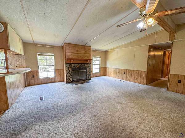 Est $815/moWOODED RETREAT! 5 BR, 3 BATH MANUFACTURED HOME on 5.5 ACRES west of Byron. Enjoy your hobbies in the 2 wired outbuildings with wood floors that are 12x24 and 10x12. Huge LR/GR Combination with gas log fireplace open to kitchen and dining room. Main Bedroom Suite has walk-in closet and a modern tile shower. Across the living areas are 4 bedrooms and 2 full baths for everyone's private space. Includes all kitchen appliances, washer & dryer. Laundry room opens onto back porch. Screened front porch. Such a private setting! The foundation is secured to the ground but it will not qualify for VA or FHA loan. Form T-234 for Permanent Location is recorded. Priced for a quick sale! Call for appointment.