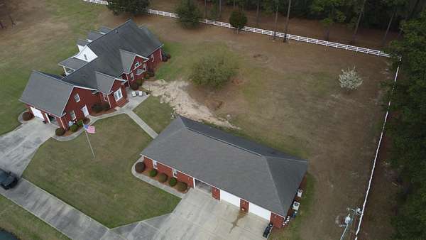 Situated on 3.89 acres along Berley Mc Rd, this stunning custom all-brick two-story home offers space, comfort, and versatility in a beautiful setting. A welcoming full-length front porch adds timeless Southern charm and provides the perfect place to relax and take in the peaceful surroundings. With 4 bedrooms and 4 bathrooms, the thoughtfully designed layout provides both functionality and charm. The main level features a spacious owner's suite along with an additional bedroom, perfect for guests or multigenerational living. Upstairs, you’ll find two additional bedrooms and a full bath, while a separate staircase leads to a large bonus room—ideal for a media room, home office, or playroom. The home showcases elegant tray ceilings along with a blend of tile and hardwood flooring that adds warmth and character throughout. The inviting floor plan includes a formal dining room and a bright eat-in kitchen, creating the perfect spaces for everyday living and entertaining. An attached side-load two-car garage offers convenience while maintaining the home’s attractive curb appeal. Step outside to enjoy the expansive property featuring a detached three-car garage with a separate one-level living space that can serve as a private apartment or comfortable mother-in-law suite. This additional living area includes a bedroom, bathroom, kitchen, living room, and laundry area—making it ideal for extended family or guests. The kitchen within the suite is equipped with a propane stove. The detached garage offers space for a car lift, ample working space, and storage. Enjoy the peaceful setting while still being conveniently located just 10 minutes from Downtown Conway and approximately 20 minutes to Myrtle Beach, where you’ll find a wide variety of shopping, restaurants, grocery stores, doctors, and countless activities along the Grand Strand. With its generous acreage, flexible living spaces, and impressive amenities, this property offers a rare blend of privacy, functionality, and opportunity.