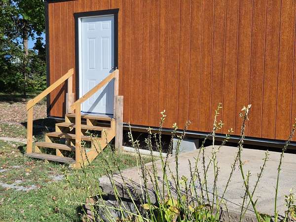 Est $389/moLot in town with public water and sewer ready for hookup. 16x32 structure that has the beginnings of a tiny home or studio. Seller has electric wire ready to be installed. Wall studded, ceiling fans, heaters and AC units new and ready to be finished. 1 car garage and great back yard. Conveniently located. 2025 survey.