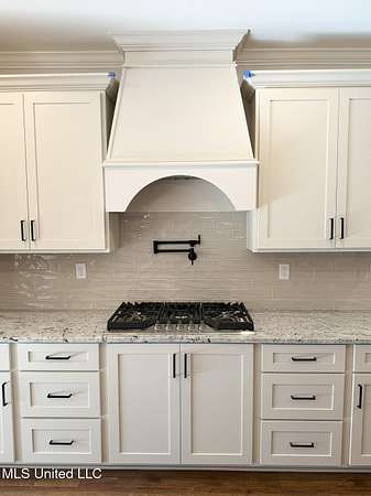 NEW HOME UNDER CONSTRUCTION ~ IMPRESSIVE French Country home on 1.57 acre lot., great location and no city taxes. This plan offers 3,100 s.f. with (5) Bedrooms (including bonus), (3) Baths (One is a Jack-and-Jill) and is a split/open floor plan. On the main level you have the primary bedroom with salon bath, second bedroom, another full bathroom, family room, breakfast room, formal dining, laundry room, HUGE foyer. Upstairs, you have (3) bedrooms (or 2 plus a media room) plus a Jack-and-Jill bathroom. The exterior of the house boasts sophistication with its beautiful, rounded turrets, brick and stone accents. If the curb appeal doesn't get you, the interior will! Home offers a catwalk looking down into the main living area and foyer, plus a custom made, curved staircase, adding an even greater prestigious look! Other interior ''wows'' include walk thru shower, rich granites, wood floorings, bull nose edging, ornate custom ceilings and custom fireplace and with built-ins in the great room. So many unique and beautiful features to this home...it is a must see! The kitchen offers custom cabinets, granite, SS appliances, gas range, double ovens, breakfast bar & room, SS appliances. The Primary Bedroom offers tray ceiling, wood flooring, salon bathroom with ceramic tile, soaker tub, walk through shower, granite/double vanity and large walk-in closet. Other home features include (3) car garage, crown molding, covered patio & front porch, tankless water heaters, wood tread on stairs, wrought iron railing, gutters, security alarm, security lights, and SO MUCH MORE!!! Come customize your home today!! Builders reserve the right to tweak all plans/colors/elevation as builders try to make all homes unique. Photos are of this plan previously built. Est. completion Jan 2026.