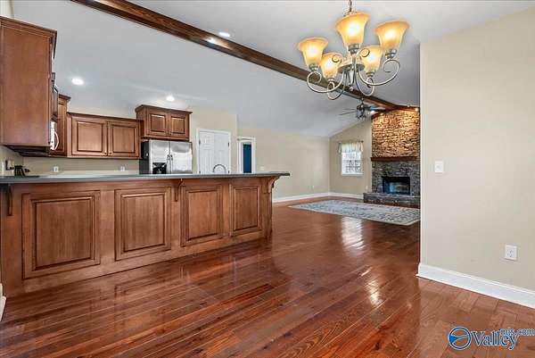 Est $1,400/moYou will fall in love with the serene beauty of this thoughtfully designed home nestled on four acres. Gleaming wood floors, tall stone fireplace, dining area next to spacious bar in kitchen. Stainless appliances. Large pantry. Spacious shelved primary bedroom closet. Neutral colors throughout- perfect for many styles. Wrap around porch invites you to relax in private or entertain your guests! Highly desirable area, within minutes of I-65, schools, shopping and entertainment. This one won't last, so schedule your private tour today.
