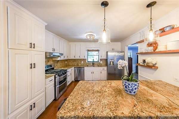 Seller is offering an interest rate buy down to 4.99% !!! One-of-a-kind renovated ranch that you have been waiting for. A complete 2022 Renovation.4 Bedroom / 3 Bath one level home nestled on a private 1.5 acre lot that is ideal for the camper and/or boat owner. Spacious Kitchen features, custom white cabinets, SS appliances, granite counters, and plenty of counter space for the chef. Open floor plan features a large Family Rm and adjacent Dining Room that offers an abundance of natural light. The oversized Den is the perfect place for Saturday football get togethers and family events. The Master Suite showcases an elegant Vaulted Master Bath complete with soaking tub and walk-in shower. The 4th Bedroom / Office is perfect for the "work at home" professional. When it is time to relax, grab your cup of coffee and head out to the back patio and waterfall feature and koi pond. Just minutes to Marietta Square, I-75, and Town Center.