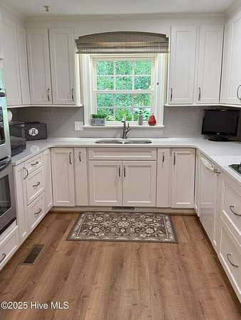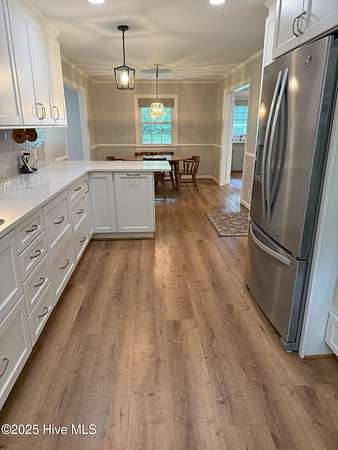 Discover the perfect blend of modern comfort and country tranquility in this beautifully updated 3 bedroom, 2.5 bath home, nestled within the peaceful community of Pantego. 6.23 acres! Situated on an open 1 acre Homesite, with an additional 5 acre wooded parcel surrounding it, offering exceptional privacy, space, and potential for outdoor enjoyment or future expansion. Step inside to find an inviting open-concept living room, ideal for entertaining or simply relaxing by the stunning gas-log fireplace. The heart of the home is the newly updated U-shaped kitchen, featuring all-new cabinetry loaded with smart storage features, sleek quartz countertops, a stylish ceramic backsplash and an additional bar seating area. High-end stainless steel appliances include new double wall ovens, refrigerator, gas cook top with vented hood, and a stainless steel sink, perfectly combining style and function. Great office space and updated utility room. Retreat to the master suite, complete with a spacious bedroom, master bathroom, large walk-in closet, and a built-in vanity table. Additional updates throughout the home include Luxury Vinyl Plank flooring in the kitchen, dining room, office, and utility room; new carpet in the living room and bedrooms and fresh interior paint. The property includes a one-car carport with adjoining cement parking pad, wide gravel driveway, and plenty of additional parking space. For hobbyists or outdoor storage, a workshop, 10x14 pump house, and lean-to are all included. Shingles on the home and storage building were replaced in 2018. A manual transfer switch for a generator is housed securely behind fencing. Home alarm system can convey to new owner. The property is located apprx 8 miles from the charming town of Belhaven, offering convenient access to shopping, restaurants, pharmacies, clinic and boat ramp for a variety of waterfront activities. This property truly must be seen to be appreciated! (Includes parcels 7609-72-4639 & 2971 sold together)