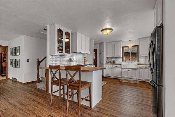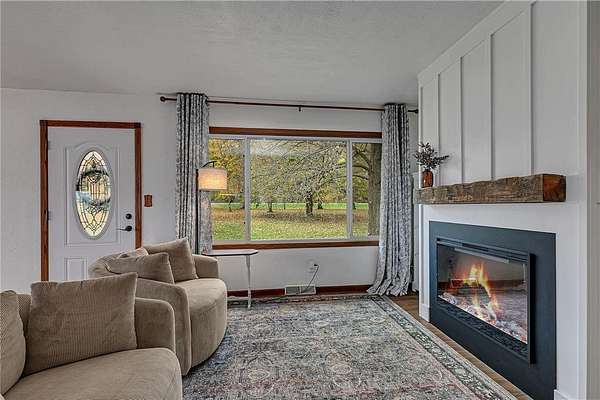 Beautifully updated farmhouse with modern finishes and new flooring throughout. The spacious kitchen features a peninsula with seating and flows into the informal dining and living areas. The south-facing wall of the living room has floor-to-ceiling windows, while large windows on the east and west sides fill the space with natural light and panoramic views.