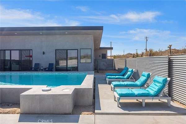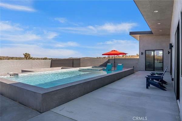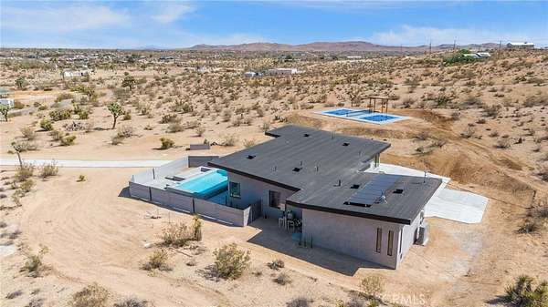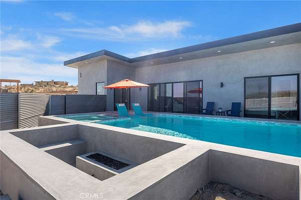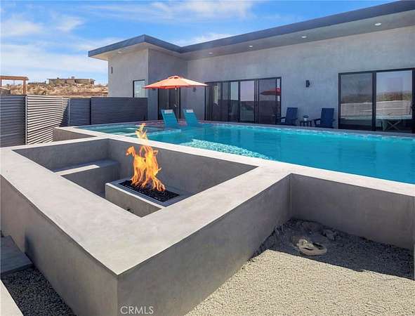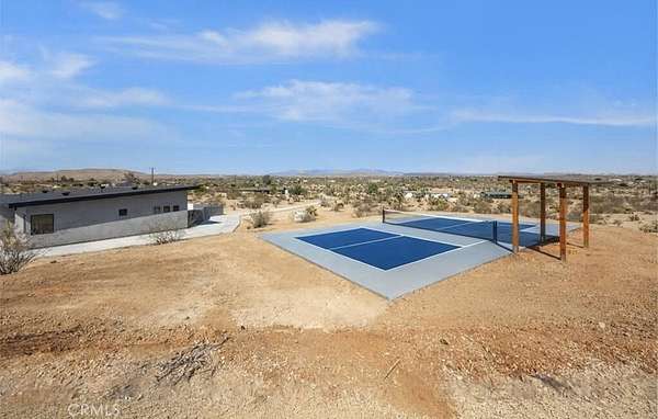 Experience the ultimate desert lifestyle in this brand-new modern home, perfectly designed for both relaxation and entertainment. Located in the highly sought-after Joshua Tree area, this property immediately impresses with its resort-style outdoor amenities--a private pickleball court, sparkling in-ground pool and spa, and an expansive sunken fire pit, all set against breathtaking desert and mountain views.