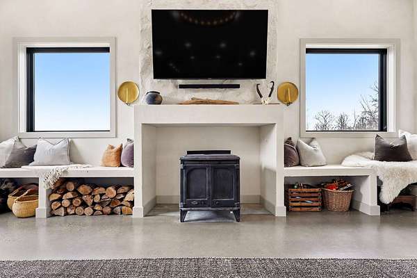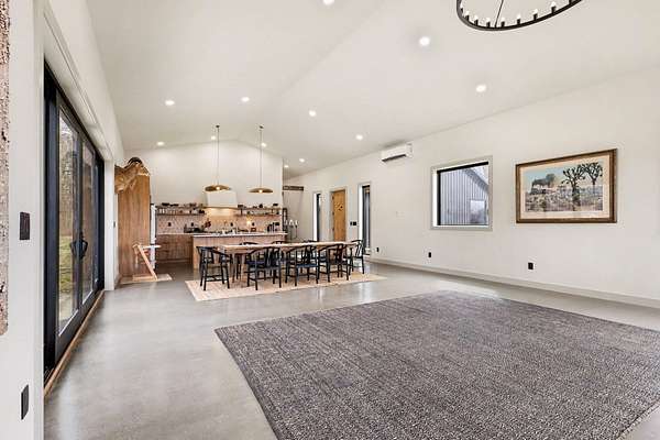 Escape the pace of the city and discover your own private retreat on over 21 acres. Inspired by time spent in Joshua Tree National Park, this one-of-a-kind property brings a sense of calm, space, and architectural simplicity that feels worlds away. Set on 21.68 acres, the pole-built design offers both character and flexibility, offering 4 bedrooms, 2 bathrooms and an oversized garage. Inside, soaring ceilings span every room, enhancing the open, airy feel throughout. The heart of the home is the kitchen, anchored by a large island ideal for gathering and entertaining. The primary suite provides a comfortable, private retreat within the home. Every window frames a different perspective of the land, including wide open vistas, rolling natural scenery, and uninterrupted views that create a true sense of escape. The approach sets the tone with a scenic tree-lined drive that gradually opens to sweeping views, offering a quiet transition from everyday life to something much more peaceful.